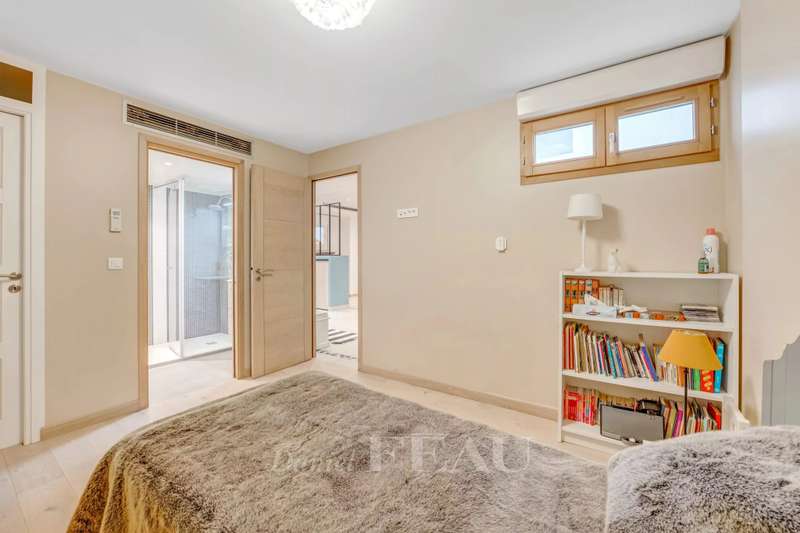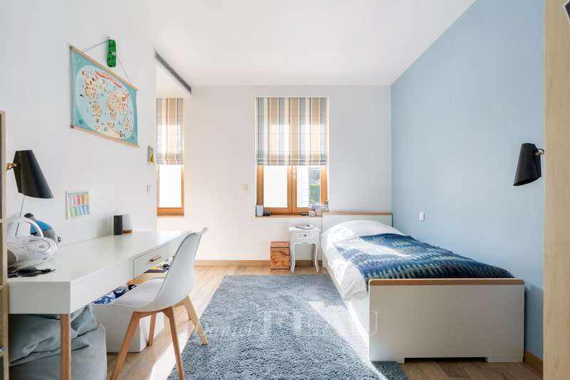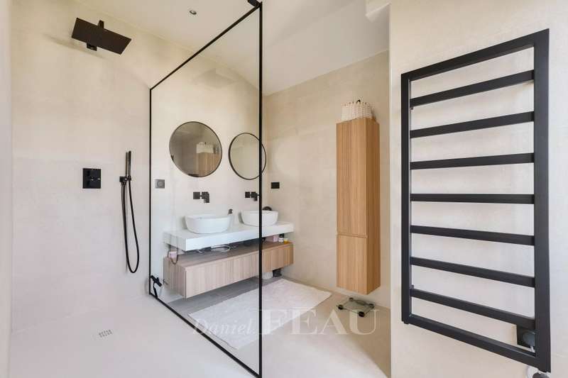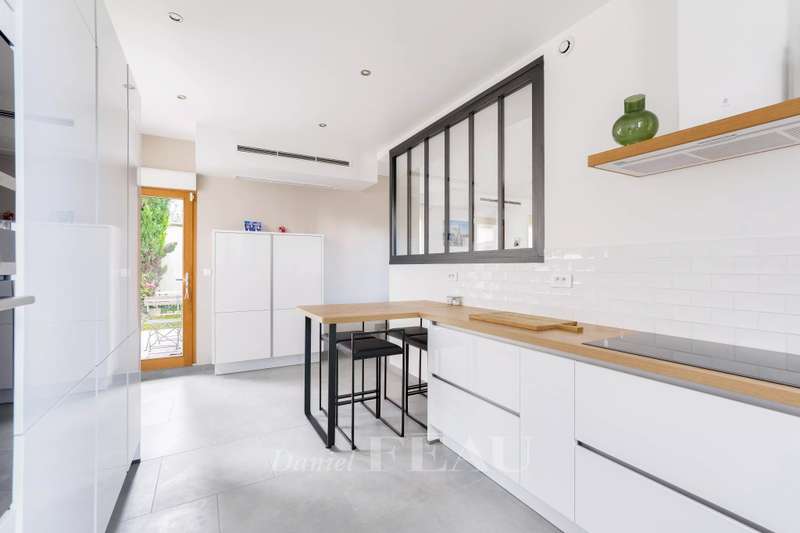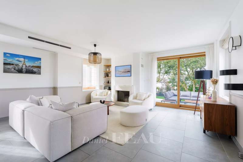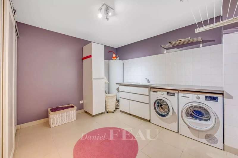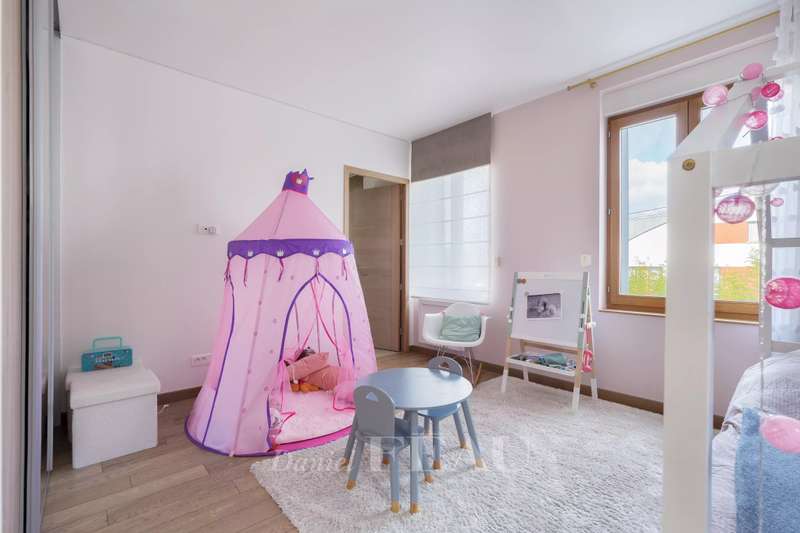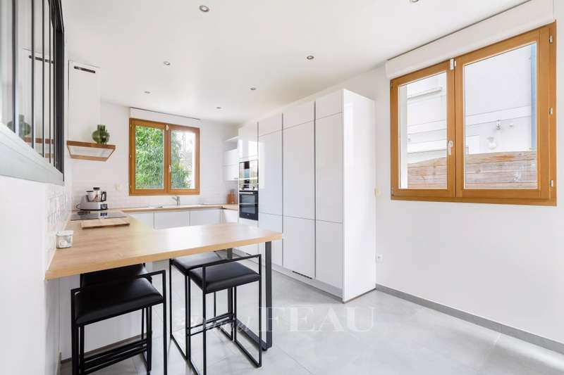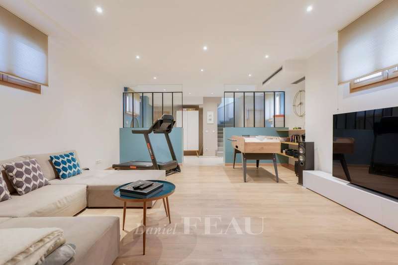 This beautifully appointed near 180 sqm late 19th century Mansart-style property is located at the bottom of a private no-through road under 10 minutes by foot from the town centre and near the schools. It includes a spacious living/reception room opening onto a south-west facing terrace and a landscaped garden with a swimming pool, and an equipped semi open-plan kitchen. Three bedrooms including a master suite with a bathroom and a dressing room, and a second bathroom are on the upper floors. A half-basement comprises a spacious family room, a guest bedroom with a shower room and dressing room, a utility room and a storage area. With parking space for two cars in the paved interior courtyard and for two more in the private alley. An ideal family home near the historic centre of Rueil-Malmaison a short distance west of the capital.
