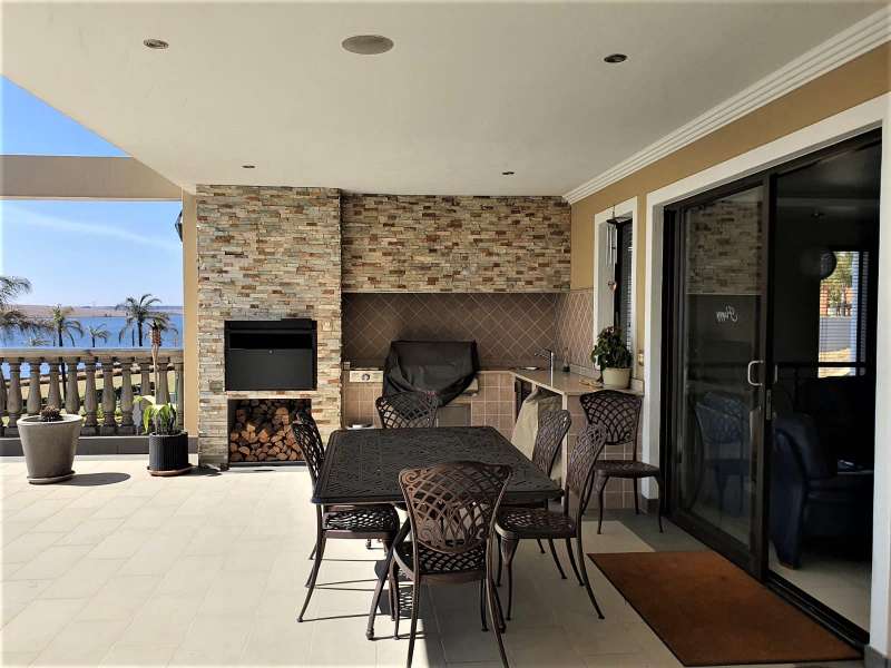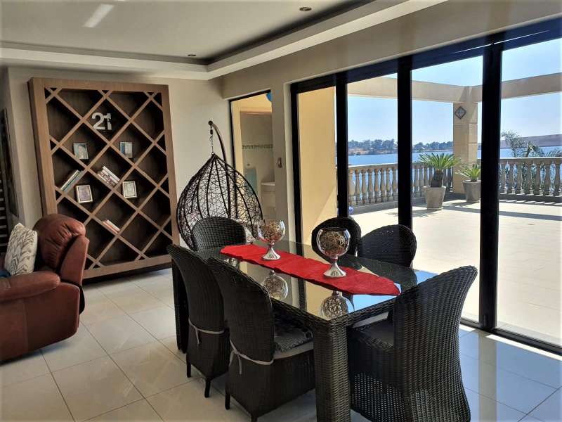 Experience unparalleled luxury living with this stunning 6-bedroom, 6-bathroom, 10-garage home situated on the picturesque waterfront of Witbank Dam. This opulent residence comes complete with its very own private jetty, boat, and launching facility, ensuring that every day feels like a vacation retreat without ever having to leave the comfort of your home. Upon entering this exquisite estate, you'll immediately be enveloped in a sense of serenity and tranquility, as the breathtaking views of the water's edge greet you. Beyond being a mere residence, this property is your personal sanctuary, offering an abundance of space that caters to both your family's needs and those of your cherished friends. The main features of this luxurious home include: Ground Floor: A state-of-the-art kitchen equipped with modern conveniences such as a built-in microwave, coffee machine, and fridge. A scullery and pantry for added convenience. Three elegantly designed lounges that offer distinct spaces for relaxation and entertainment. A spacious dining room that exudes elegance and charm. A well-appointed bar, perfect for hosting gatherings and enjoying quality moments with company. A guest toilet for added convenience. An en-suite bedroom with a lavish shower. An expansive entertainment area featuring a built-in braai, gas braai, and ample room for a fridge. An inviting swimming pool that beckons you to unwind and enjoy leisurely swims. An outdoor shower and toilet to cater to poolside comfort. Upstairs: A cozy pyjama lounge, offering a private space for relaxation and quiet contemplation. Three generously proportioned bedrooms, each boasting a balcony with awe-inspiring views, and en-suite bathrooms that epitomize indulgence. The master bedroom includes a walk-in closet for added luxury. Basement: An additional bedroom that provides flexibility and accommodation options. An office or study space, catering to your professional and intellectual pursuits. A fully-equipped gym, allowing you to maintain your fitness routine within the privacy of your home. A temperature-controlled wine cellar, perfect for the connoisseur and enthusiast alike. Spacious garages with capacity for up to 10 vehicles, ensuring ample storage and protection for your prized possessions. A self-contained flat featuring a bedroom with a full en-suite bathroom, a dining room, lounge, and storage space. Outside: Supplementary accommodation with a bedroom, kitchen, and bathroom, providing a comfortable space for guests or staff. Don't miss out on the opportunity to witness this architectural masterpiece firsthand. Contact us today to schedule a viewing and immerse yourself in the grandeur and elegance that this property has to offer. Your dream of luxurious waterfront living awaits.