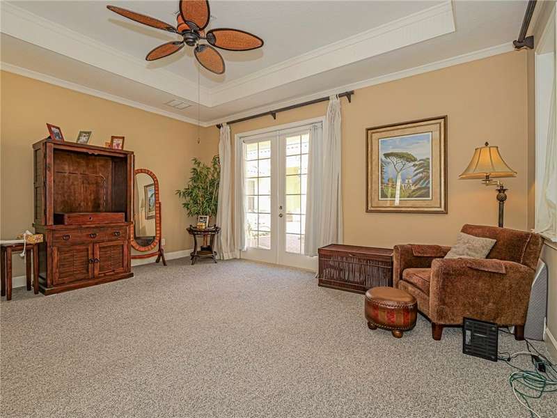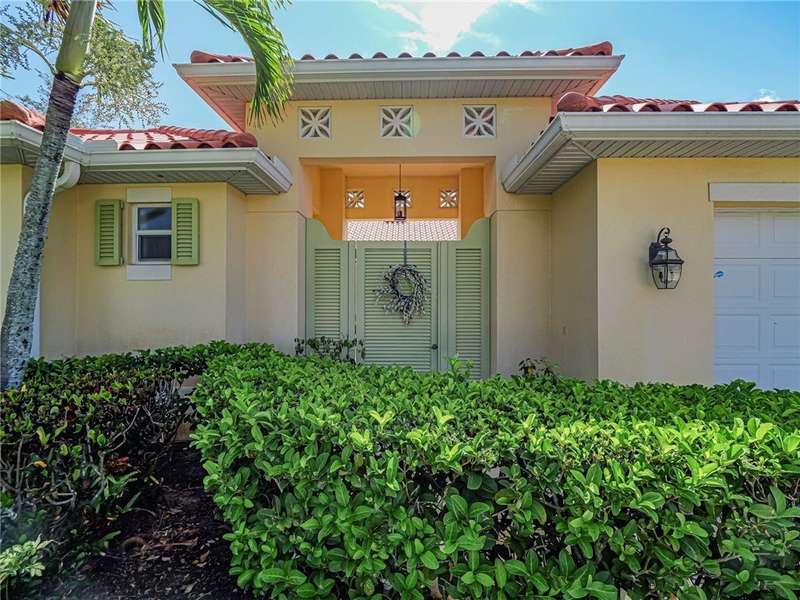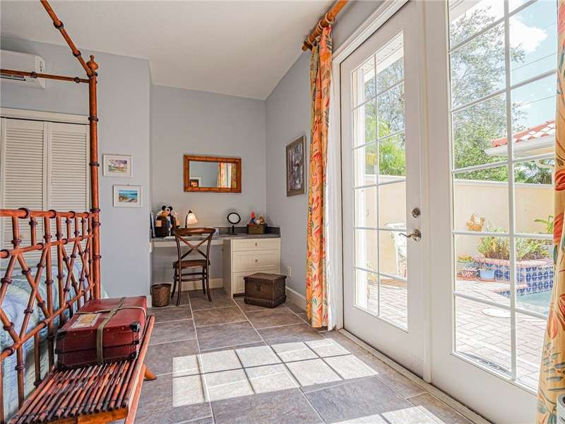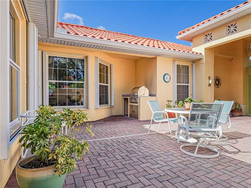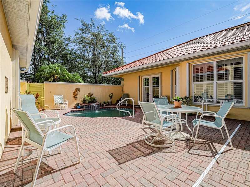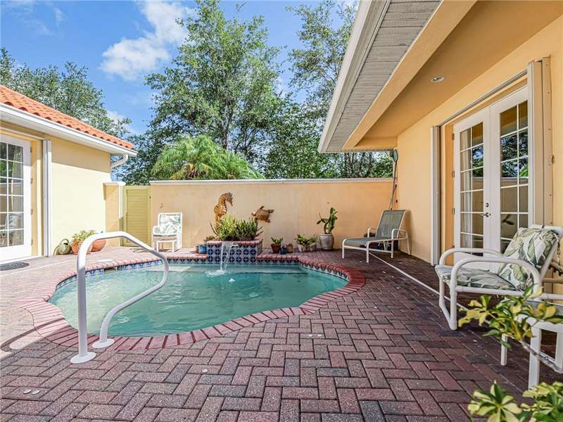 PRICED TO SELL!! Exquisite Mediterranean courtyard pool home in a premier gated community of just 41 homes. Features a grand 24'x23' living room with tray ceilings, 20'x20' Mediterranean tile, and a private cabana suite with full bath. Enjoy the courtyard pool, built-in BBQ, plantation & accordion shutters, home re-piped in 2024. Elegant, spacious, and perfect for indoor-outdoor living. Low HOA and resort-style serenity await!
