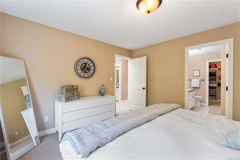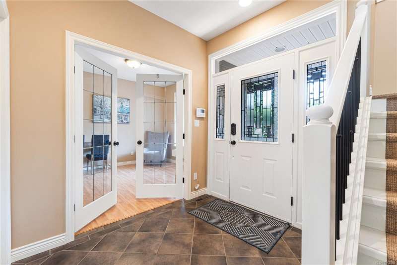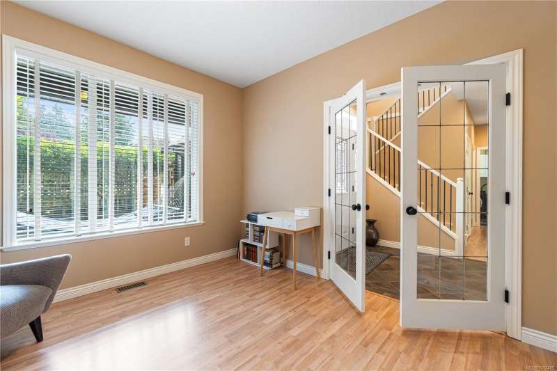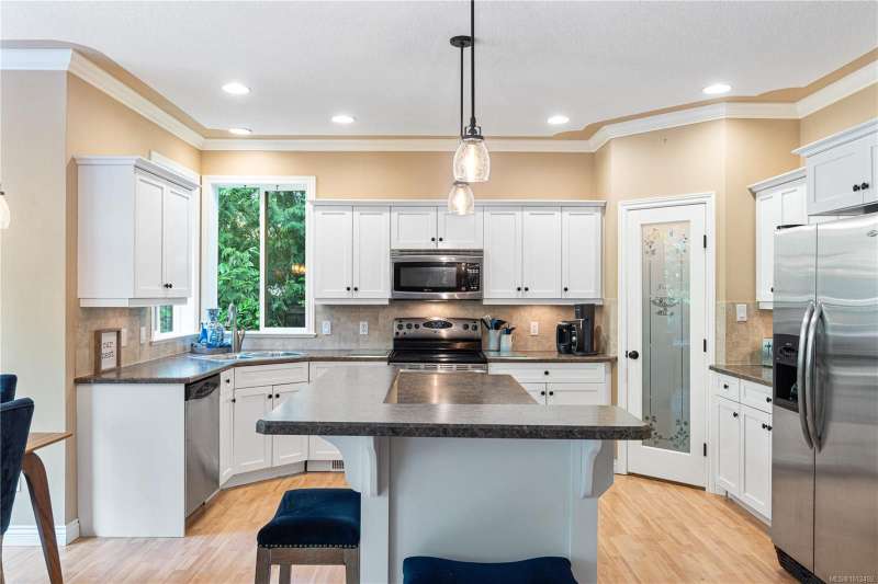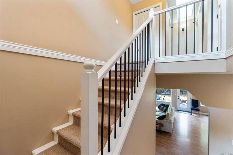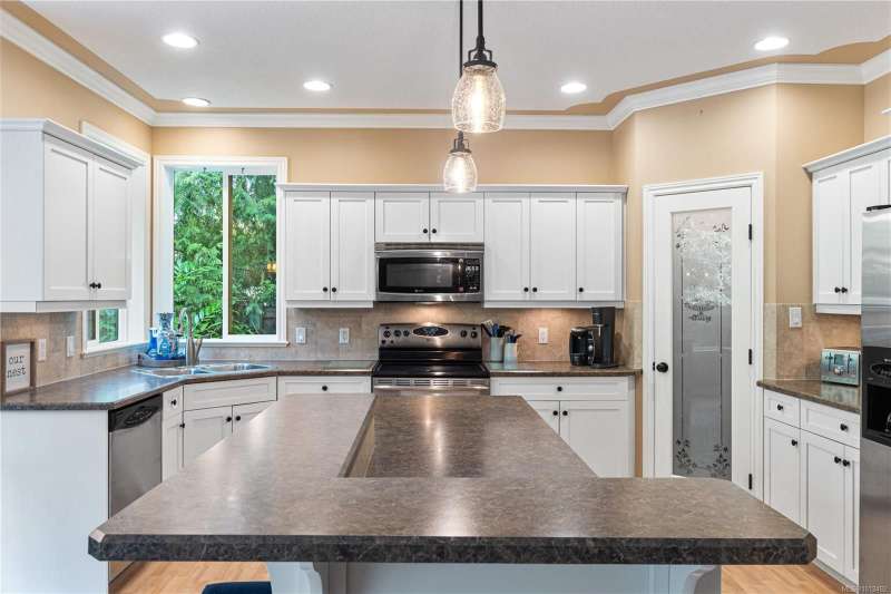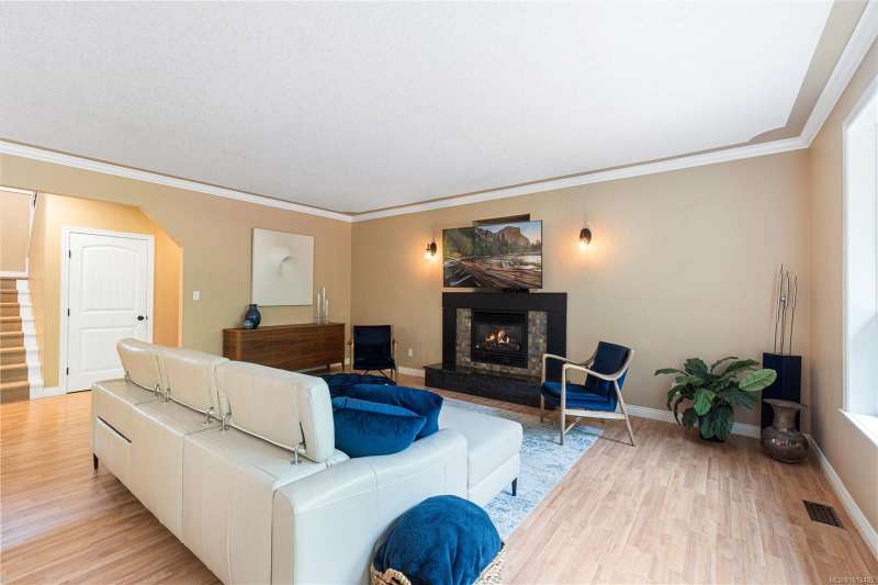 Immaculate & Move In ready 2 Storey Home. Step inside to a den/home office with double French doors & a large window overlooking the private courtyard. The main level features a bright open-concept layout. It's kitchen boasts abundant cabinetry, tiled backsplash, generous counter space & a pantry. The living room is highlighted by crown moulding, cozy fireplace & expansive windows framing views of the beautifully treed backyard. A well-planned laundry room with built-in cabinets, counter space, & sink adds extra convenience. Upstairs, the primary suite offers a walk-in closet & a 5-piece ensuite. Two additional bedrooms & a full bathroom complete the upper level. Outdoors, enjoy a landscaped, private backyard that features a tiered deck for entertaining, a garden shed for storage, and RV parking. This home is the perfect blend of comfort, style, and functionality. Located in a quiet, family-friendly neighbourhood just minutes from Westwood Lake's trails, schools, and amenities.