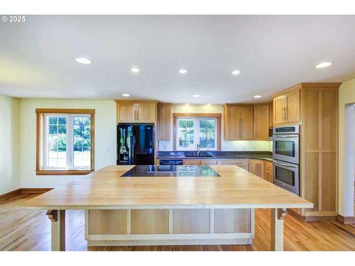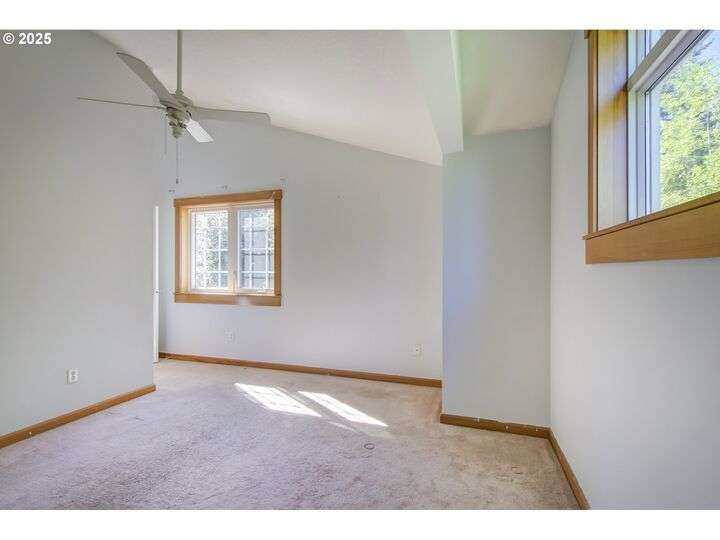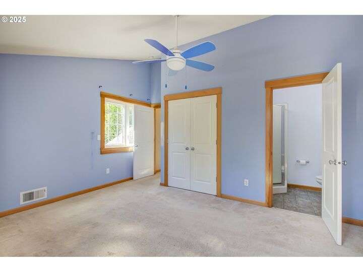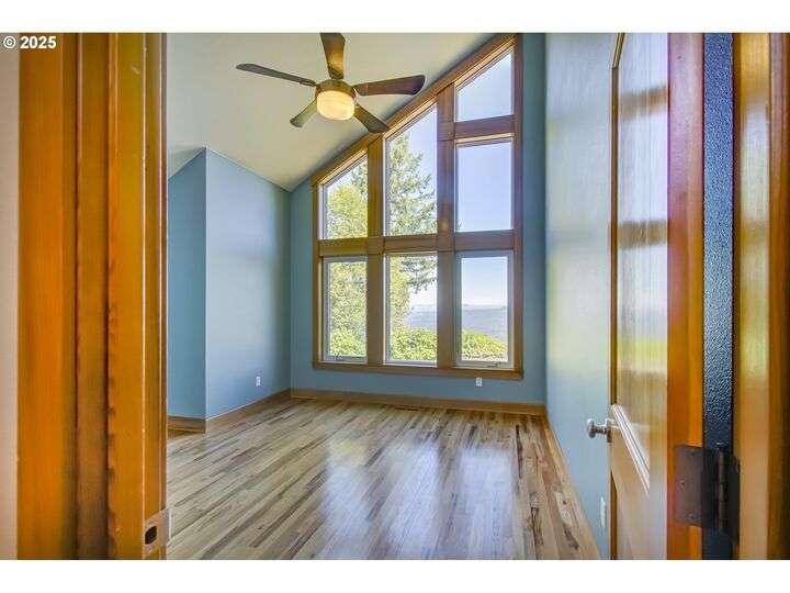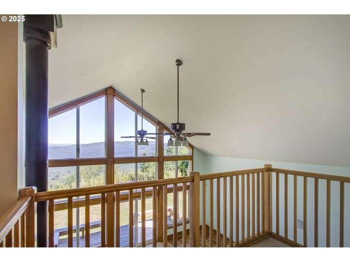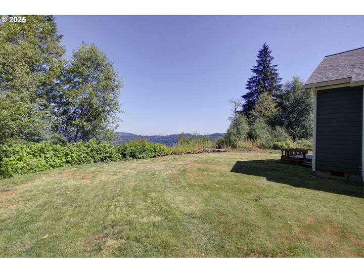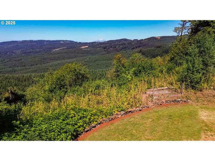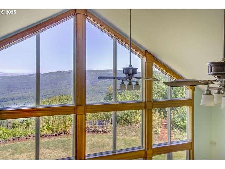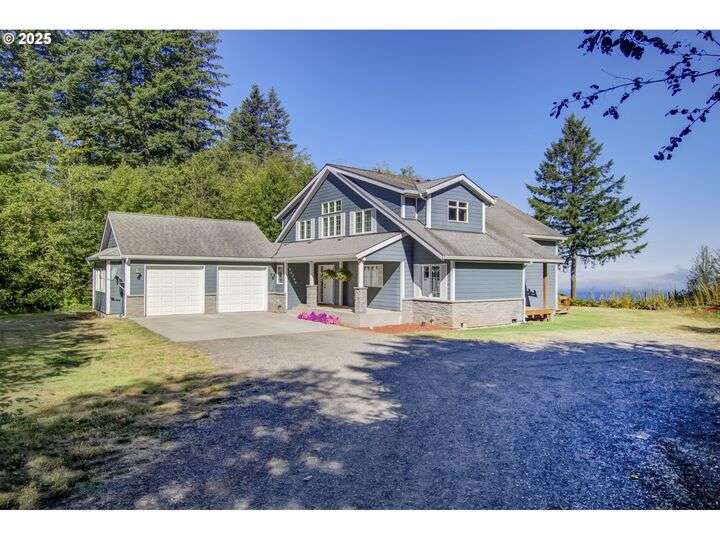 Experience breathtaking views from the comfort of your own home—including direct sightlines to Mt. St. Helens—all visible even from the first floor of this stunning retreat nestled on 3 wooded acres in scenic Brush Prairie. This beautifully designed 4-bedroom, 3.5-bath home offers 2,624 square feet of elegant living space, where comfort meets architectural charm. The main level features both the spacious primary suite and a second bedroom (or den) with dramatic floor-to-ceiling windows and vaulted ceilings that bring in natural light. Upstairs, two more vaulted-suite bedrooms provide privacy and character, perfect for guests or family. The living room is a true showstopper with soaring 20-foot windows and a cozy wood-burning stove—ideal for enjoying crisp PNW evenings. A chef’s dream, the kitchen boasts a large butcher block and slab granite island, with abundant workspace and style. Throughout the home, you’ll find approximately 1,500 square feet of real hardwood flooring and natural wood trim, enhancing its warm, organic feel. Step outside to enjoy three generous decks, ideal for entertaining or unwinding in serene privacy. With a well and septic system, plus an oversized 600-square-foot attached garage, this home is both self-sufficient and spacious. A rare opportunity to own a truly unique property that combines luxury, nature, and unforgettable views.