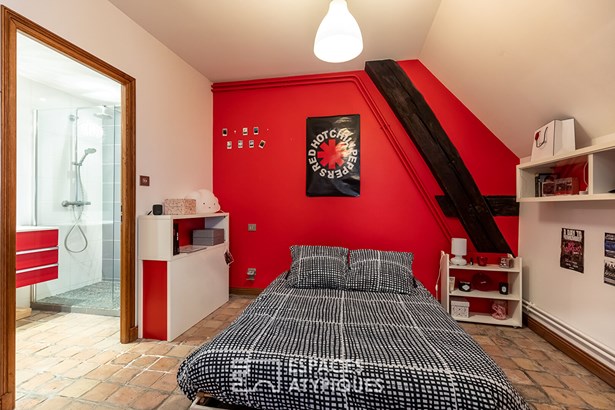 It is through a stone staircase, a central feature of this building, that one discovers the 3 levels of this house. The ground floor offers two independent apartments of 75 and 90m2 with fireplaces, woodwork, parquet flooring and moldings.