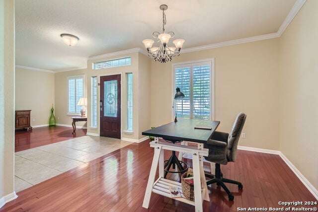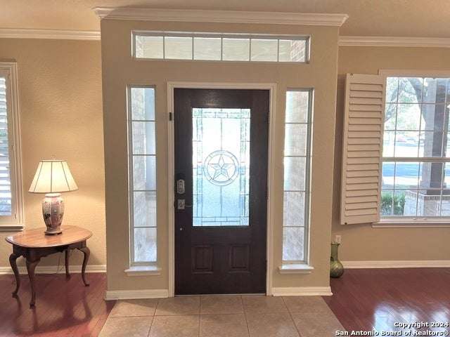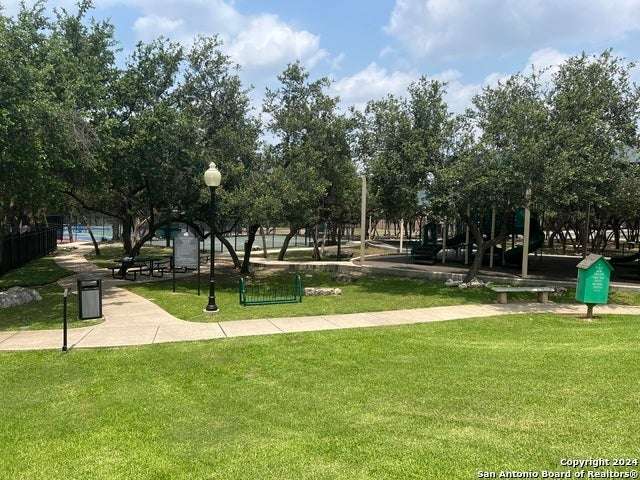Welcome to this charming one story home nestled in the secluded gated neighborhood of Stonecrest within Lookout Canyon. With no through traffic, this street makes for a quiet, peaceful choice for your next home. The home boasts 3 living areas, a dining/office, plus an open breakfast kitchen area and a spacious feel to the whole house. There are hardwood floors in many rooms and new carpet in the secondary bedroom wing. New AC in 2020, new water heater 2023,new roof 2020,new cedar fence 2023 plus recently painted throughout. The large trees, huge patio and privacy of a greenbelt lot makes the backyard a quiet oasis that could be transformed with an open wrought iron fence into the greenbelt. The kitchen has stainless steel appliances, a gas range and a small butlers pantry area ideally suited as a coffee bar. The neighborhood is within the award winning Comal ISD and walking distance to the elementary school. The recreation center offers a pool, pavilion with BBQs, playground, soccer field, volleyball, basketball, tennis and pickleball courts. This beautiful move-in ready home has the advantage of being close to all that San Antonio has to offer but without city taxes. Priced competitively for a quick sale. Schedule your showing today!