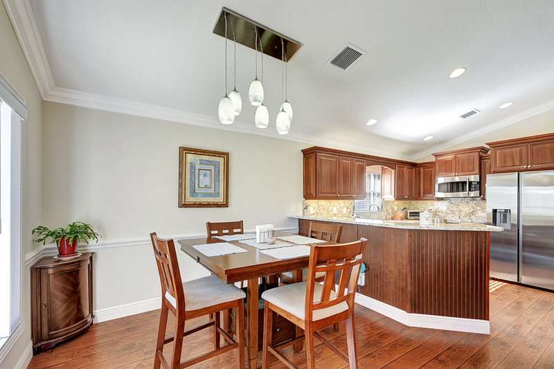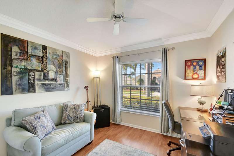 :IMPECCABLE SINGLE FAMILY HOME SITUATED ON SPECTACULAR WATERFRONT LOT! ACCORDION HURRICANE SHUTTERS ON WINDOWS & COLONIAL HURRICANE SHUTTERS ON FRONT WINDOWS IMPACT RESISTANT GLASS ON SLIDERS. WOOD FLOORING THRU-OUT ENTIRE HOME. UPGRADED KITCHEN WITH CHERRY WOOD CABINETS, PULL OUT SHELVES AND SOFT CLOSE DRAWERS. GRANITE COUNTER TOPS WITH FULL BACK SPLASH, UNDER CABINET LIGHTING AND STAINLESS STEEL GE PROFILE APPLIANCES (Brand New Samsung Fridge). CROWN MOLDING THRU-OUT. LARGE MASTER BEDROOM WITH WALK-IN CLOSETS AND MASTER BATH WITH SEAMLESS SHOWER DOORS AND NEWER VANITY WITH GRANITE TOP. SIT IN YOUR EXTENDED SCREENED COVERED PATIO OVERLOOKING THE WIDE VIEW OF THE LAKE. WELLINGTONS EDGE IS IDEALLY LOCATED CLOSE TO WELLINGTON GREEN MALL, POLO & EQUESTRIAN CLUBS