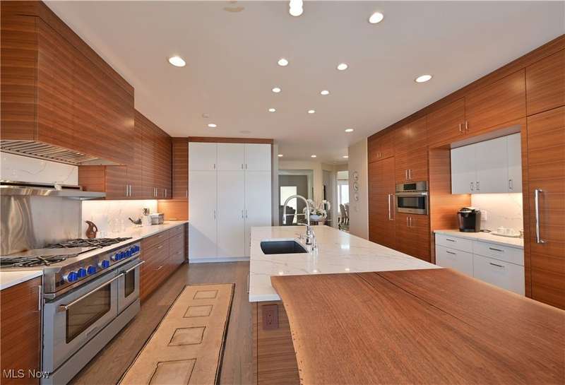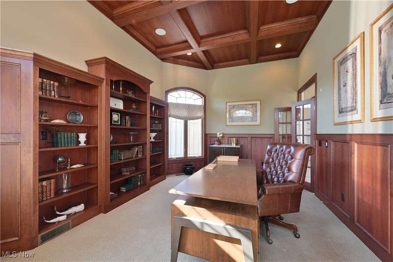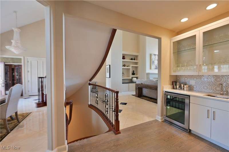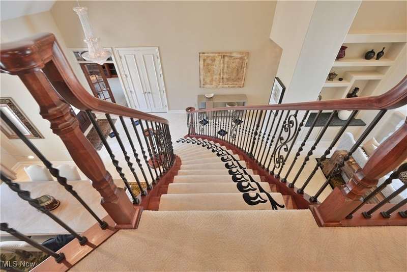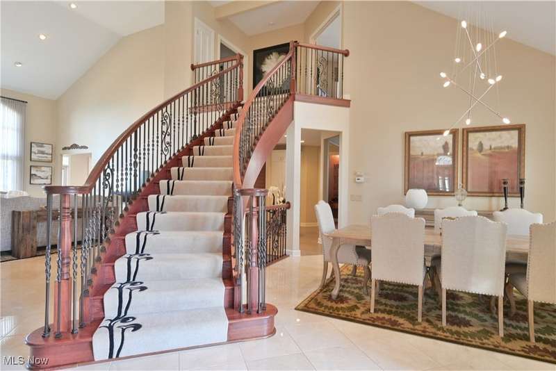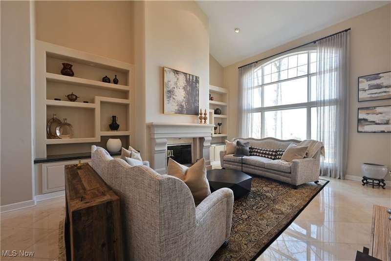 This exquisitely decorated home, designed by Associated Design and internationally acclaimed Trac Papish showcases the meticulous and timeless elegance throughout. A dramatic 2 story marble open foyer welcomes you with a grand winding staircase adorned with Finelli ironworks spindles. Enjoy the wide open floor plan featuring soaring ceilings and expansive windows that flood the home with natural light! Gourmet kitchen is a chefs dream! Seamless access to the 4 season sun room and hearth/family room. First floor primary suite offers a spa like retreat complete with a luxury bath heated floors and whirlpool tubs. 2 story great room and a distinguished library with a 12 foot coffered ceiling. Additional highlights include a lower level bedroom and full bath with access from the outside! ideal for guest or in-laws. Step outside to the beautifully landscaped yard with an inground heated pool. The yard is 542 feet in depth. This home is offered fully furnished and all new flat screen tvs included. All furnishings are 1 year old!!