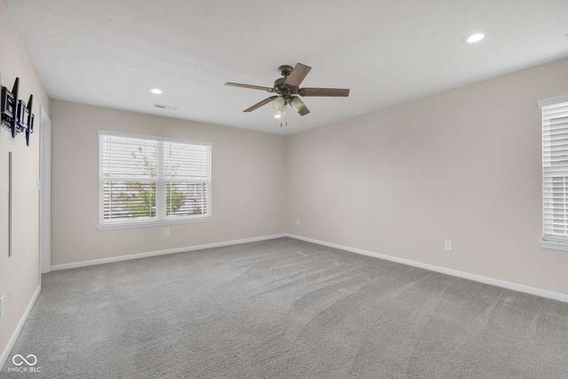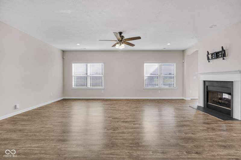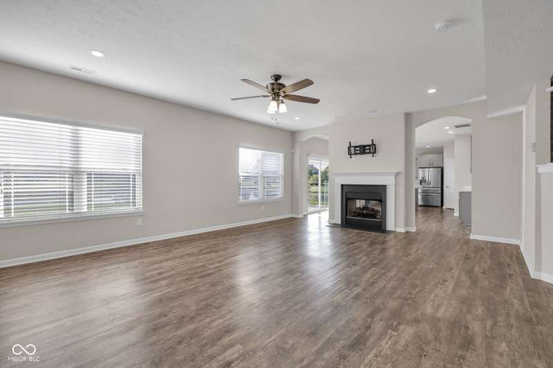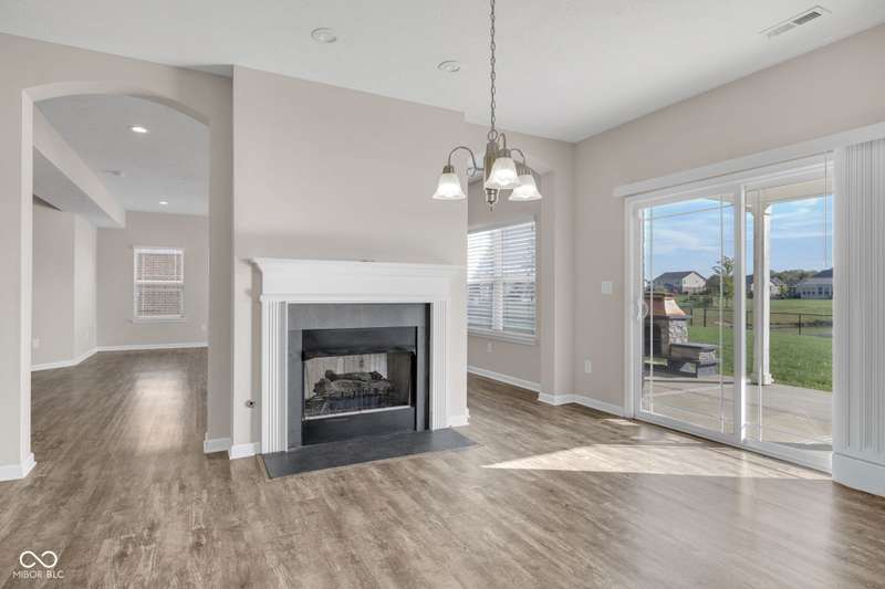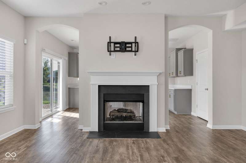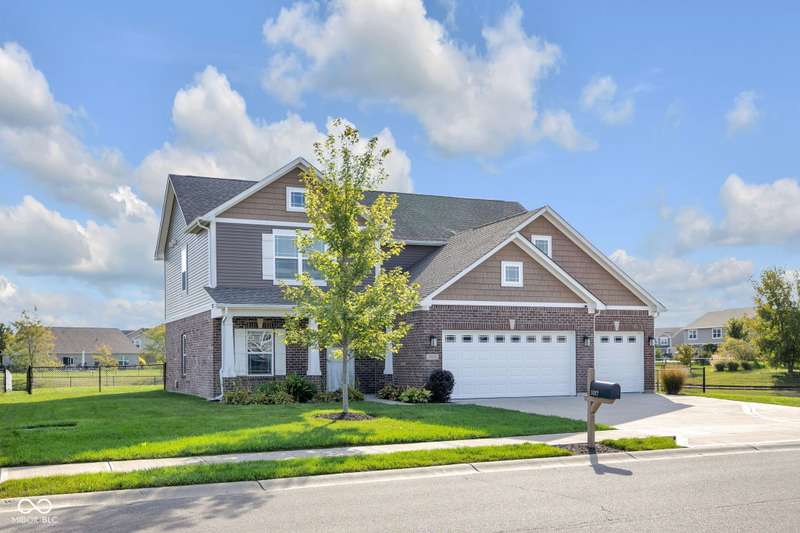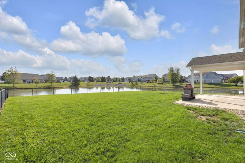 Step inside this stunning 4-bedroom home in the sought-after Stone Crossing neighborhood! From the moment you enter, you'll notice the thoughtful design-starting with a versatile flex room off the entryway - ideal for a home office, playroom, or creative space. The open-concept living area is anchored by a dual-sided fireplace, connecting the spacious family room and the large kitchen with plenty of cabinetry, countertop space, stainless appliances and walk-in pantry. Entertaining is effortless here, with a large covered patio just off the kitchen, complete with its own outdoor fireplace and a fully fenced yard overlooking a peaceful pond. Upstairs, retreat to the luxurious primary suite featuring walk-in closets, a spa-like bathroom with soaking tub, and a separate shower. Three additional bedrooms provide plenty of space for family or guests, sharing a full bath with modern finishes. The 3-car garage offers room for cars, storage, or even a home gym, while the neighborhood amenities-walking trails and a playground-add even more! HVAC (2019), Roof (2019), Fridge/Range/Dishwasher (2019), Microwave (2025).
