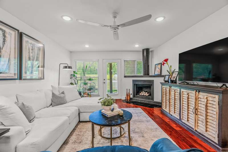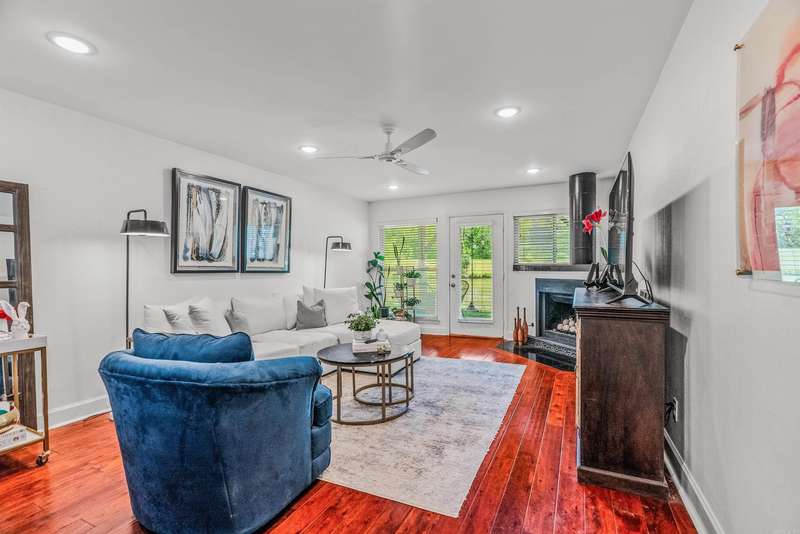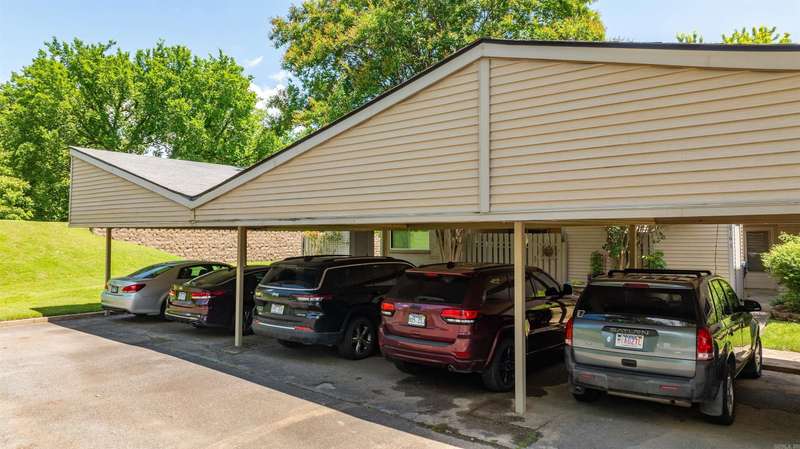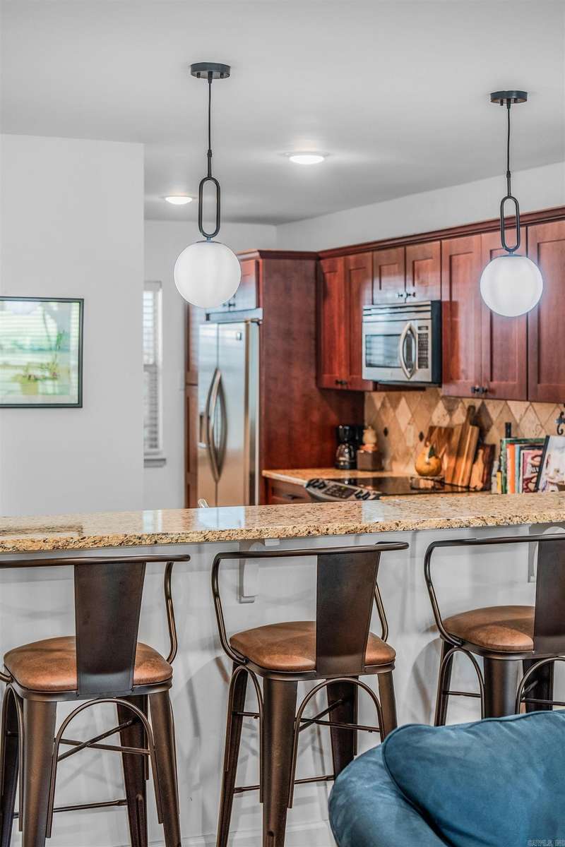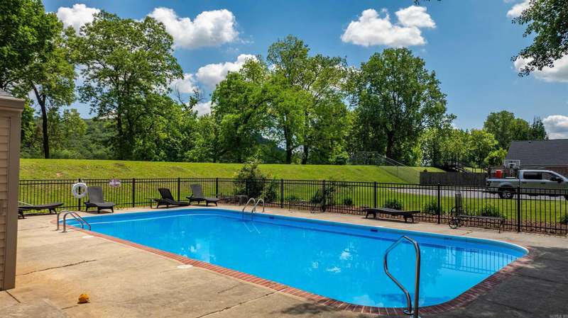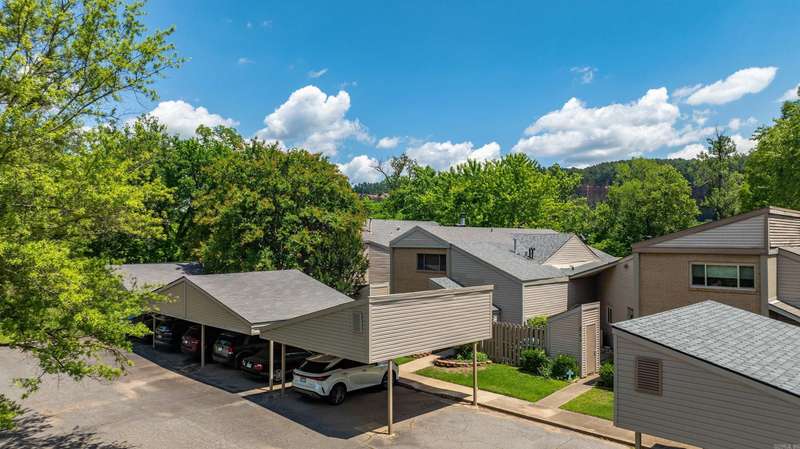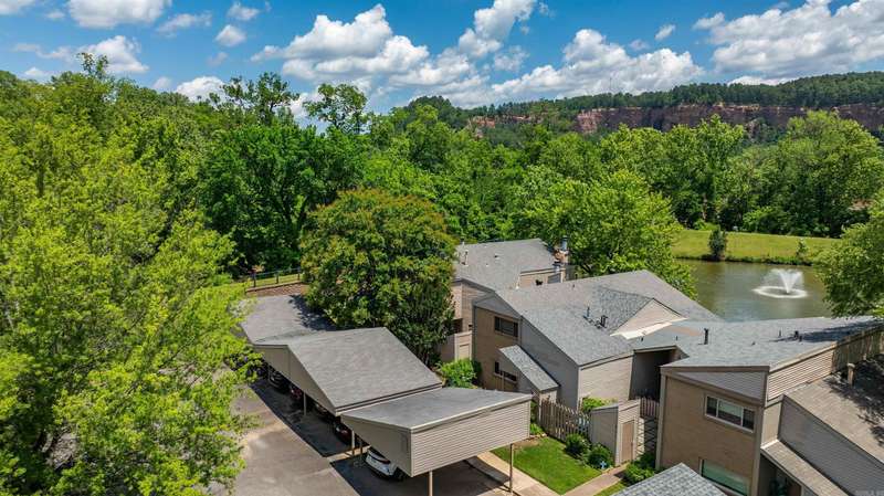 Gorgeous views of the Arkansas River bluff are right outside the back door of this updated condo in the gated community of Round River. The main level has a sleek feel with the kitchen, renovated half bath, living room with a fireplace. The kitchen has granite countertops, built-in stainless-steel refrigerator, beautiful, stained cabinets, and a large breakfast bar that opens to the living room. Upstairs you will find a guest bedroom with its own bathroom, the laundry area with Elfa built-ins (w/d convey), and primary bedroom with a recently renovated bathroom. Recent improvements include new lighting and ceiling fans throughout (plus freshly scraped & painted ceilings), Hot water tank 2020, New front fence 2025, Elfa storage in all closets. This condo offers convenient living, close to the River Trail, Rebsamen Golf Course, Big Dam Bridge, River Trail, and a host of wonderful Riverdale area restaurants. Brand new deck off primary bedroom! Agents, please see remarks