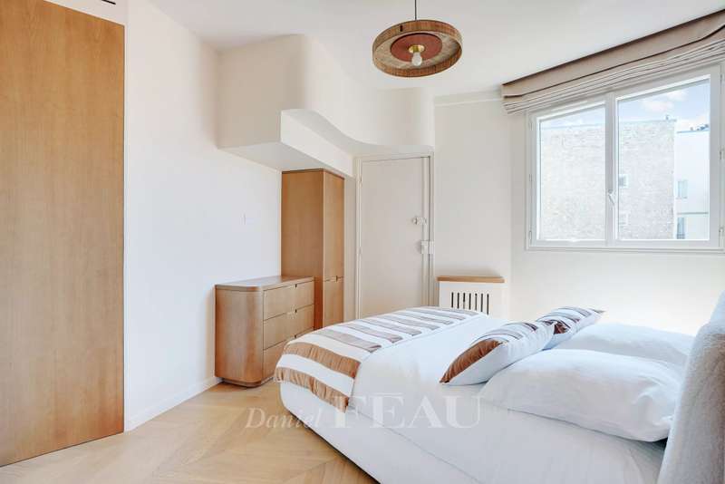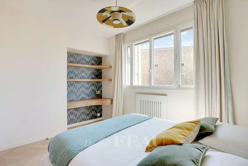Muette neighbourhood. This 120 sqm apartment on the 5th floor of a luxurious mid 20th century building with a lift has been renovated throughout by an interior decorator. Beautifully appointed, it includes a bright and spacious living/reception room with open-plan kitchen, three bedrooms and two bathrooms. Ample fitted storage space. The apartment benefits from an optimized floor plan, and is equipped with air-conditioning and home automation. With a cellar. In a prime location in the immediate vicinity of the shops, the schools and the transport networks.