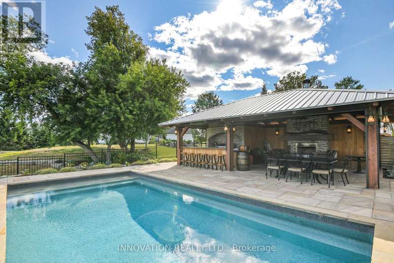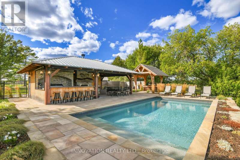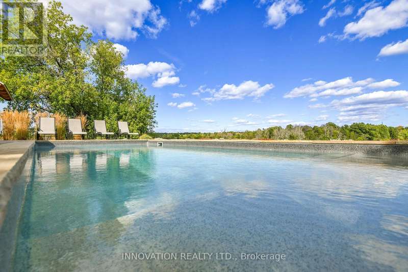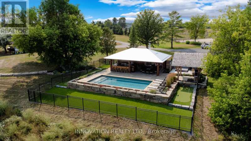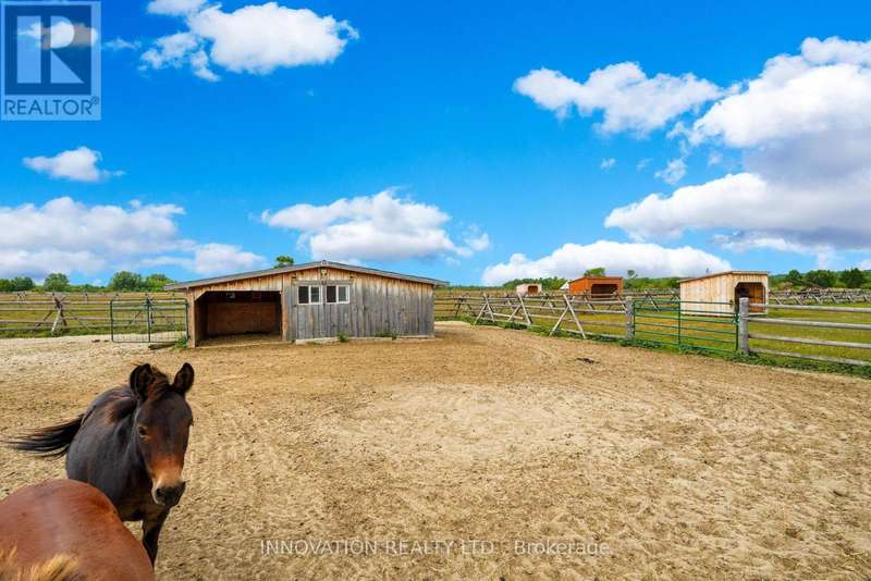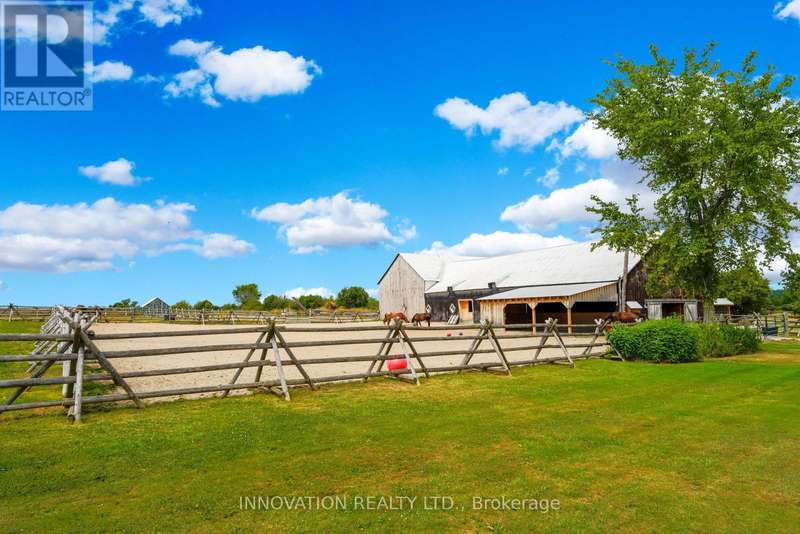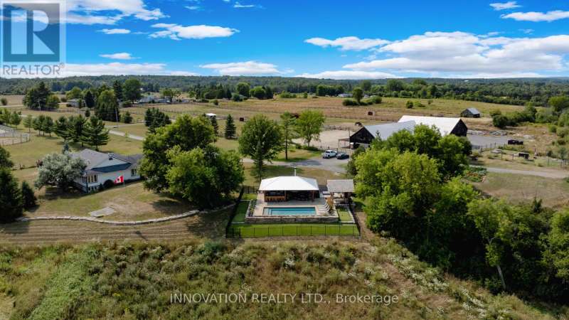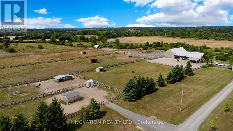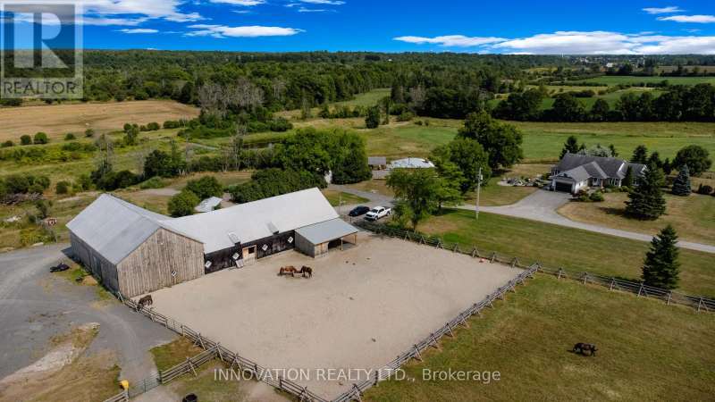 Welcome to the property of your dreams: an ideal hobby or working horse farm depending on the future you are seeking. A beautiful sugar maple lined drive takes you well away from the hubbub of the highway to a lovely home that offers bright rooms with views of the farm from all directions through floor to ceiling picture windows. A large wood deck and a fenced in yard allows the family pets to play in safety.A landscaped path with a mature variety of shrubs and perennials leads from the house to a terraced patio that includes a poolside timber-framed and screened 3 season pavilion defined by unique architectural elements, including an impressive stone fireplace and housing a stainless steel kitchen and private change room. A hot tub and a separate covered wood-fired pizza oven completesthis custom entertainment venue. The saltwater pool overlooks a natural spring fed pondand the entire venue is surrounded by a custom wrought iron fence.Across the drive you enter the world of horses where a lovingly restored vintage barn houses large custom horse stalls and pens for other farm animals, custom lockers for tack, a feed prep area, 2 tack rooms & large run in shelters opening on a sand paddock. The barn and paddocks are serviced by two designated drilled wells and the barn has ample storage for hay. There are several paddocks fenced by patten cedar fencing (many electrified) each having its own equine shelter or small barn, including a medical paddock allowing for quarantine of new arrivals or recovering horses. An exceptional sand ring and an outdoor arena are designed for working and training horses. This could easily be a horse school for those who desire. Adjacent to the barn is a charming and functional insulated chicken coop with electricity, large vegetable garden and a goat enclosure. 85 acres of productive hayfields, pastures and trails completes the picture of this unique and ideal property. All within minutes of amenities in the charming town of Almonte. (id:6509)