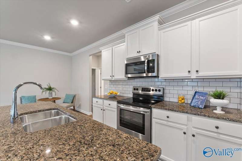 Welcome to this move-in ready 4BR, 2.5BA full brick home in Maple Ridge just minutes from Clift Farm and the Hwy 72 shopping corridor. This popular Bella floor plan was built in 2020 and excludes the office walls making the combined great room and dining room a perfect canvas for open floor plan living. Owners turned the DR side into their TV area and added an electric fireplace. The secluded owner’s suite provides both shower and tub and large walk-in closet with organizers. The flat backyard and covered porch are perfect for outdoor entertaining.