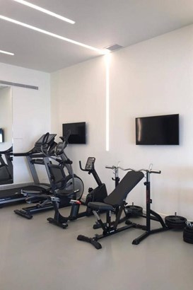 Key features include a security door, alarm system, intercom, storage, Jacuzzi, fully equipped electrical appliances, a playroom, a safe, an internal staircase, double glazing, fly screens, balconies, and a fully furnished, bright, and luxurious interior with a modern minimalist design. The property also benefits from air conditioning, solar panels, a well-maintained garden, a lawn, and a stunning overflow pool with unobstructed sea views.