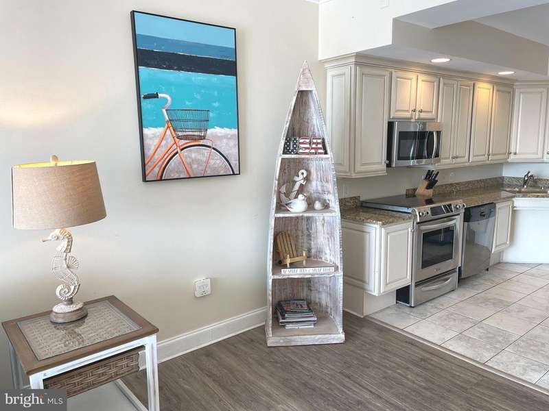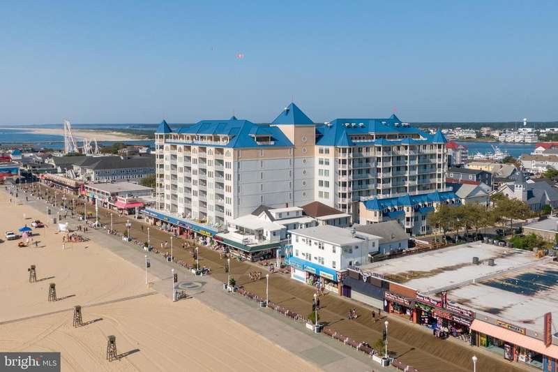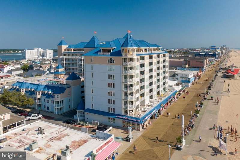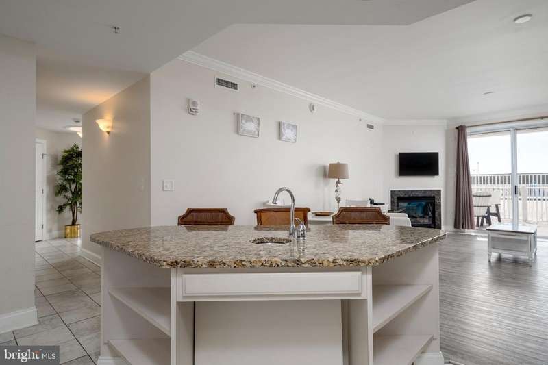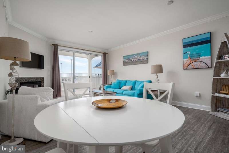 Welcome to this stunning condo at Belmont Towers, offering modern upgrades, resort-style amenities, and an unbeatable Ocean City location! The open floor plan features granite countertops, stainless steel appliances, custom wood cabinetry, a cozy gas fireplace, and coastal-inspired furnishings. Large windows fill the space with natural light, and a spacious deck off the living room is perfect for relaxing or entertaining. Both bedrooms are generously sized with private deck access. The primary suite includes a luxurious en-suite bath, creating a private retreat. Situated directly on the iconic Ocean City Boardwalk, this condo provides immediate access to the beach, amusements, dining, and entertainment. Belmont Towers offers premier amenities, including a rooftop pool with panoramic views, fitness center, sauna, putting green, and secure parking garage. Unit #408 is also handicap-accessible, with wider doorways, grab bars, and easy-entry ramps-making it appealing to a wider range of guests and enhancing its vacation rental potential. Whether you're looking for your dream coastal getaway or a strong investment property, this prime downtown O.C. condo truly has it all!