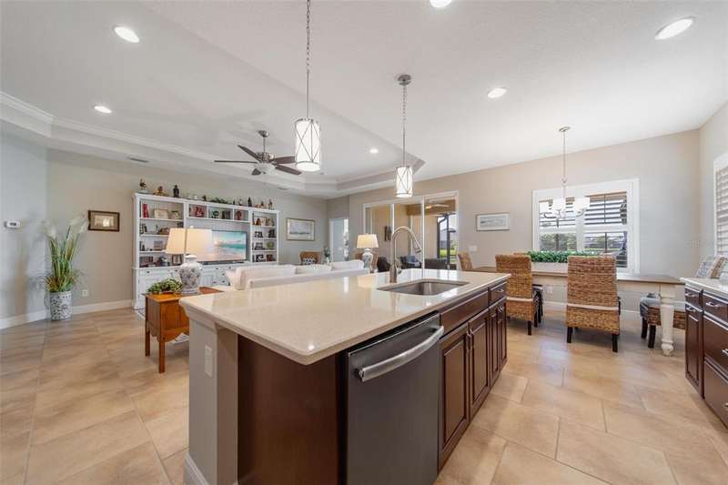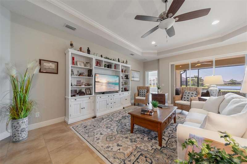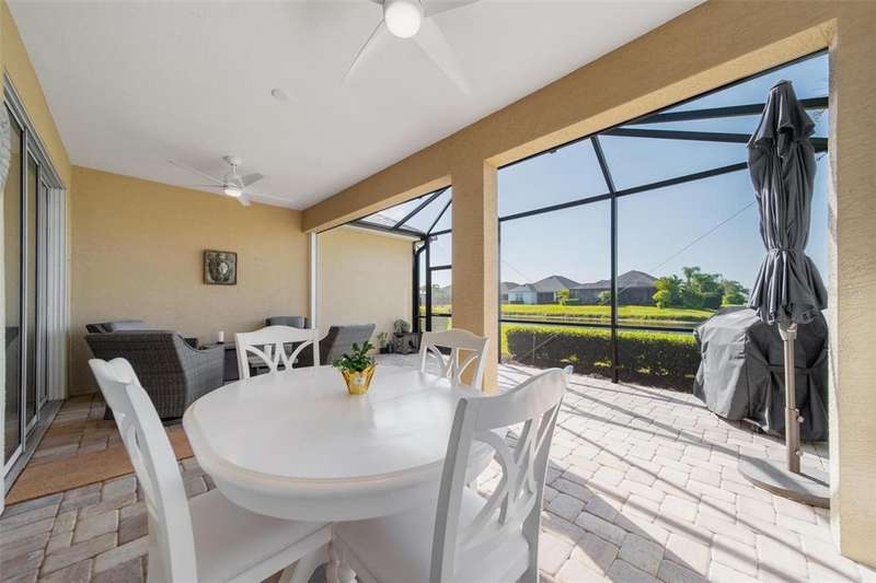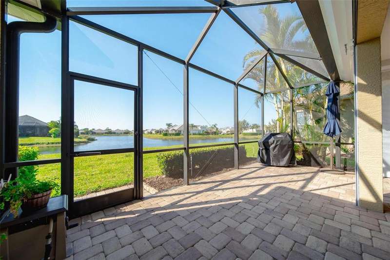 Tranquil Lakeside Living; One of the standout features of this remarkable 3-bedroom, 2-bath plus den home in the well-manicured Eagle Trace neighborhood is the tranquil water view from your extended lanai. Imagine waking up each morning to breathtaking views of water and wildlife while sipping coffee on your lanai, or unwinding at sunset as you enjoy the gentle sounds of nature right outside your door. This home was thoughtfully designed to blend seamlessly with its natural surroundings, creating an oasis of peace and relaxation. You’ll also appreciate the new roof and hurricane protection screens, providing comfort, safety, and peace of mind year-round. Inside, the open floor plan offers effortless flow between living areas, a flexible den perfect for a home office or guest space, and light-filled interiors that highlight the home’s modern elegance. The Eagle Trace community offers an exceptional lifestyle with amenities including a play area, tennis and bocce courts, pool, jacuzzi, outdoor grilling area with tables and seating, restrooms, dog park, nearby nature trails, and top-rated Lakewood Ranch schools. Eagle Trace fosters a strong sense of community, with friendly neighbors and beautifully maintained surroundings that make every day feel like resort-style living. Discover the charm and beauty of Eagle Trace—where lakeside living meets modern convenience. Your dream home awaits in this sought-after Lakewood Ranch community! Seller is willing to provide a concession at closing to assist the buyer with a permanent rate reduction, in accordance with lender guidelines.