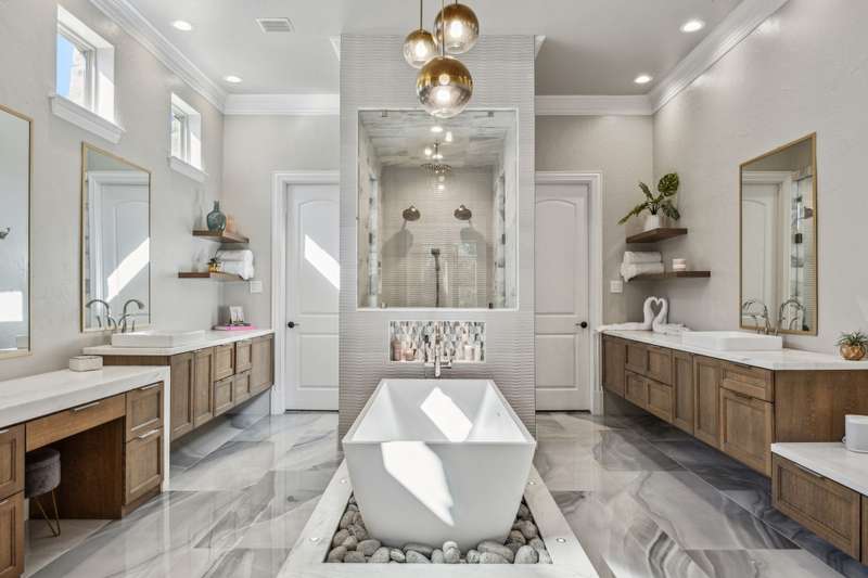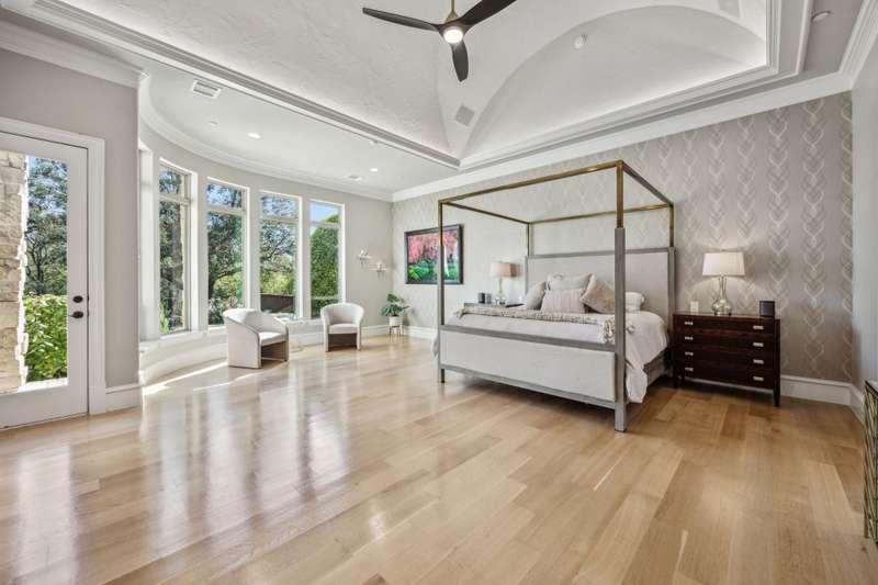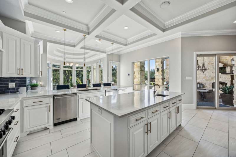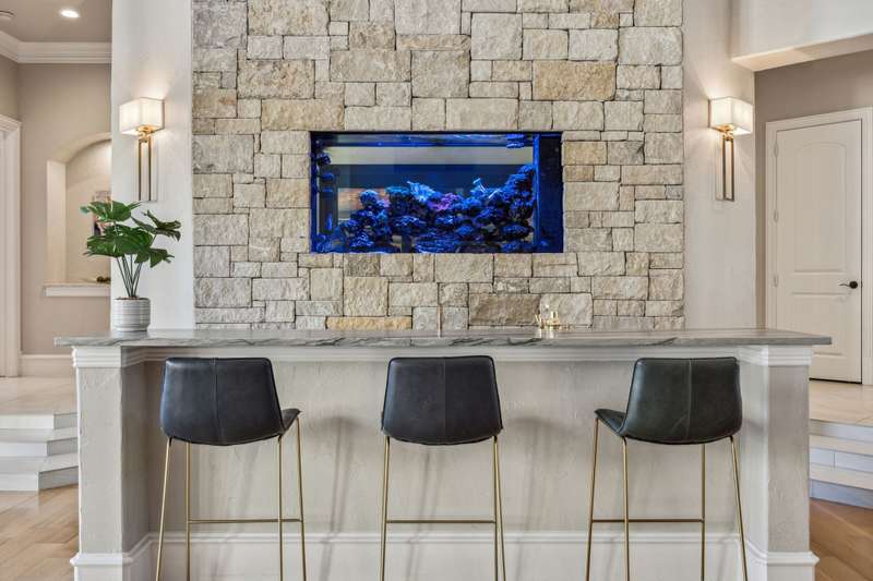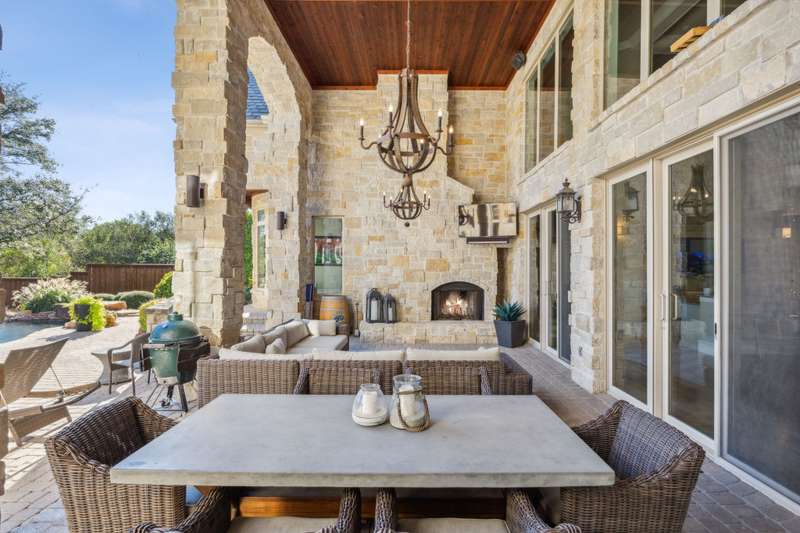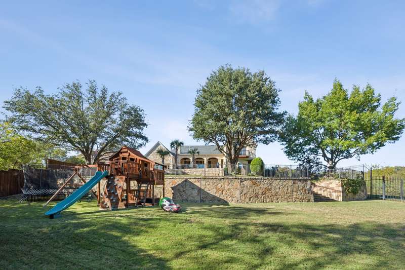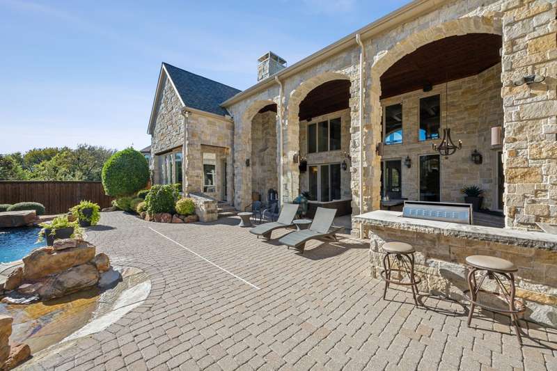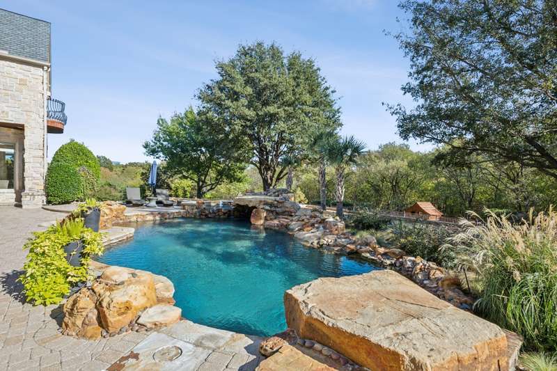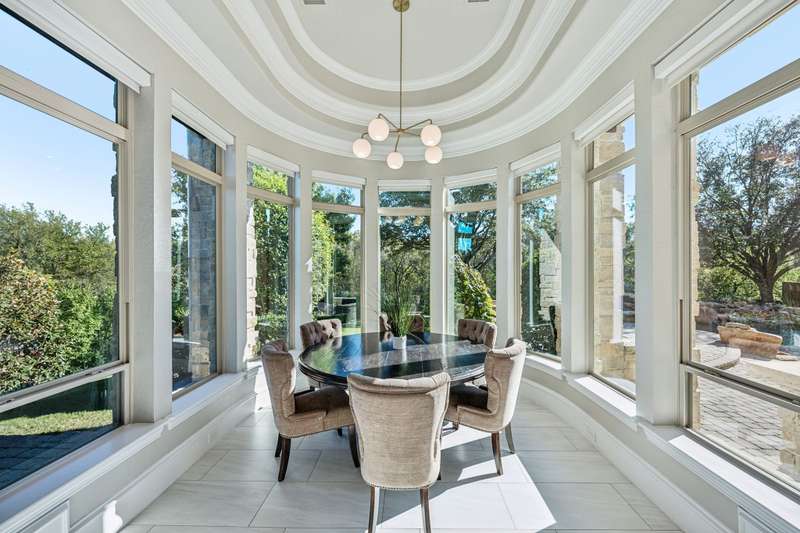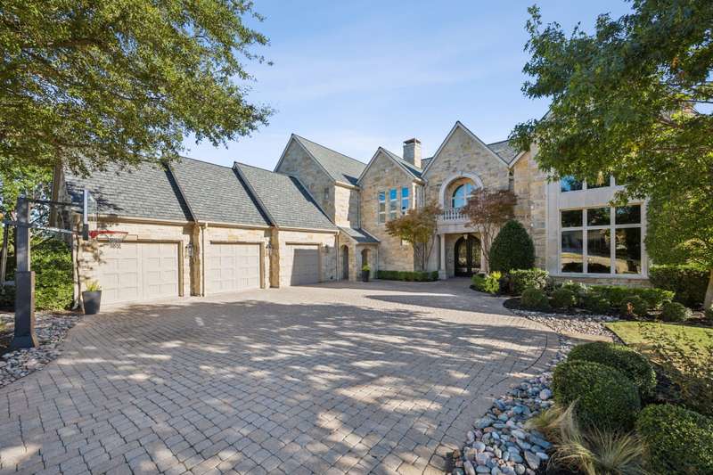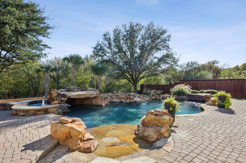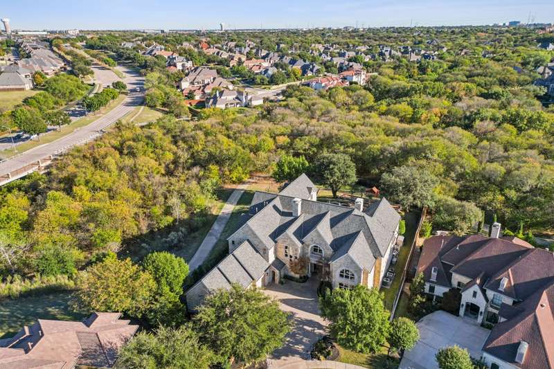 Welcome to this stunning West Plano home, a cul-de-sac lot with an expansive backyard oasis that sits on a greenbelt with unparalleled views. Recently remodeled and full of upgrades and unique touches - truly move-in ready. At entry, guests are greeted with a dramatic great room showcasing soaring ceilings, sweeping windows looking to the backyard, and a striking aquarium. Office-library combo is the perfect space for work or relaxation, with built-ins, windows culminating in an eye-catching arch, and charming winding staircase leading to library. Elegant dining room is perfect for entertaining, with barrel ceilings, butler's pantry, and bay windows. Gourmet kitchen is a chef's dream, with built-in Viking appliances, like commercial-grade gas range and vent, double dishwashers, three ovens, and walk-in pantry. Hosting is a delight, with waterfall-edge quartzite countertops, oversized island, breakfast bar, and sunny breakfast nook with windows overlooking lush outdoor landscaping. Primary suite is an enormous haven with barrel ceilings, sitting area surrounded by bay windows, and gas fireplace. Spa-like primary bath has dual vanities, separate shower with body sprays, and freestanding jetted garden tub with uplighting. Media and game room are the perfect combo to host, with wet bar, space for pool table, and built-ins. Secondary bedrooms are all generously sized, with natural light and ensuite baths. Any of the rooms could be converted to an exercise room or additional office. Backyard oasis features sparkling saltwater pool and spa with waterfall, and oversized patio that boasts a fireplace and outdoor kitchen, complete with built-in grill. Further in the yard is a peaceful nook with a koi pond. Other features include beautiful live oaks, bocce ball court, play yard, and firepit. This home is minutes away from high-end shopping and dining and a short drive to Legacy West, The Star, Stonebriar Country Club, The Clubs of Prestonwood, and 20 minutes to DFW Airport.