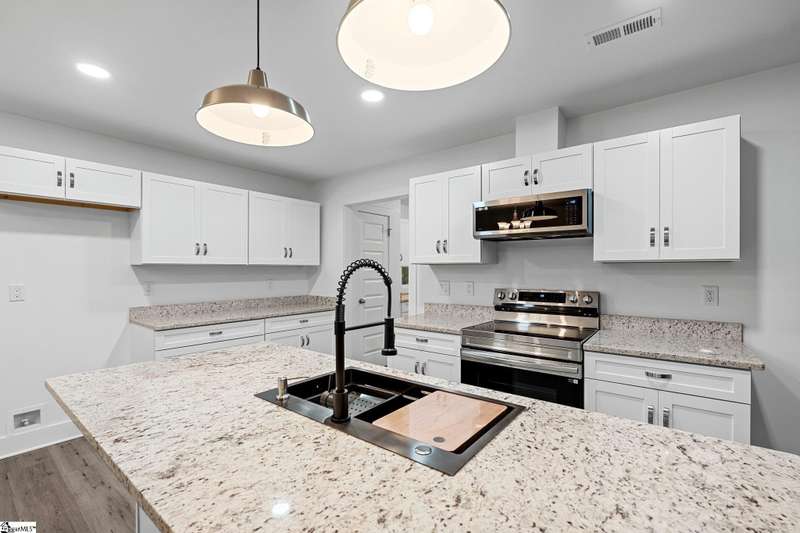 Welcome to your brand new home at 200 Hillbrook, a beautifully designed residence offering 4 bedrooms, 3 full bathrooms, and nearly half an acre of private yard space—perfect for families and entertainers alike! From the moment you arrive, you're greeted by a charming covered front porch that leads into a spacious, open-concept family room featuring luxury vinyl plank flooring throughout. The modern kitchen flows seamlessly into the living area and is outfitted with stainless steel appliances, granite countertops, and plenty of cabinet space. Sliding glass doors off the kitchen provide direct access to the rear deck, which overlooks the private, tree-lined backyard—a fantastic space for kids, pets, or gatherings. Enter the home from the attached garage into a well-designed mudroom with ample cabinetry and granite counters, conveniently separated from the laundry room for added organization. The main level includes both a primary suite and a guest bedroom, each with its own full bathroom. The primary bath features elegant Carrara-style luxury vinyl flooring and granite countertops, adding a touch of luxury to your daily routine. Downstairs, the finished lower level opens up to a second living space with French glass doors leading outside. This level includes two additional bedrooms, a third full bath, and a bonus storage room—ideal for hobbies, home office, or playroom. Brand new construction, Open floor plan with high-end finishes, spacious deck with backyard views, no nearby neighbors—enjoy peace and privacy, only 6 miles to Downtown Greenville, 1 mile to Wade Hampton Blvd, schools, grocery stores, shopping & hospitals. This is the perfect opportunity to own a private, modern home close to everything Greenville has to offer. Schedule your showing today before it's gone!