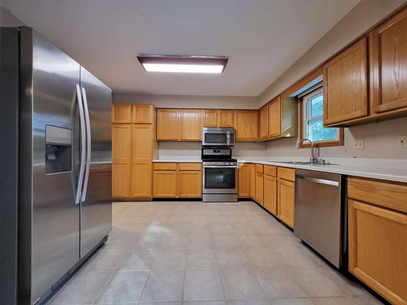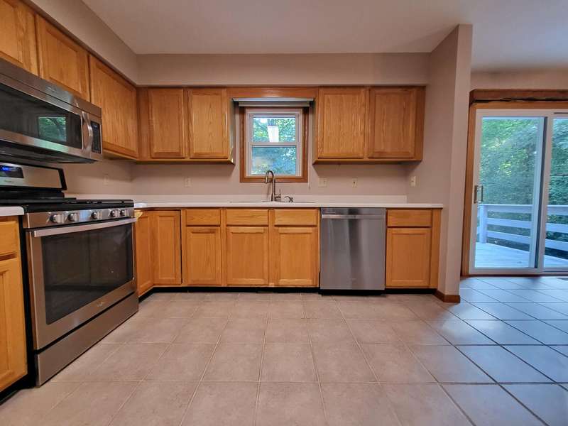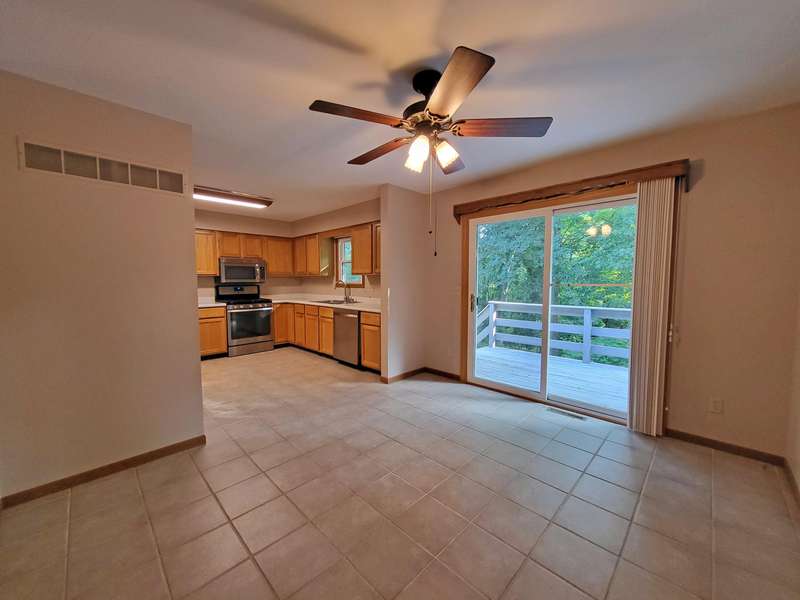 Nestled in a quiet cul-de-sac surrounded by mature trees, this home is the perfect retreat. Upon entering the home, you will notice the touches of a well-kept and maintained household. The kitchen comes complete with all stainless-steel appliances, plenty of cabinet space, and built-in pantry. The adjacent dining room has great views, and immediate access to the deck, overlooking the wooded back yard. The living room is spacious with a large bay window, letting in plenty of natural light. All bedrooms include ceiling fans and luxury vinyl plank flooring, with the primary bedroom featuring an en-suite bath with built-in linen closet. As you enter the WALK-OUT lower level you are greeted with an oversized rec room, spanning the entire width of the house. You will also find a full bath with built-in linen closet, flex room (perfect for an office or a potential fourth bedroom), large laundry room with utility sink, storage, and washer and dryer included. The lower level also features a sliding glass door/immediate access to the large concrete patio and the backyard, making entertaining a breeze. Additional features include newer hot water heater, high efficiency furnace with humidifier and air cleaner, newer windows, shed with electrical, partial fence, and one year home warranty included!