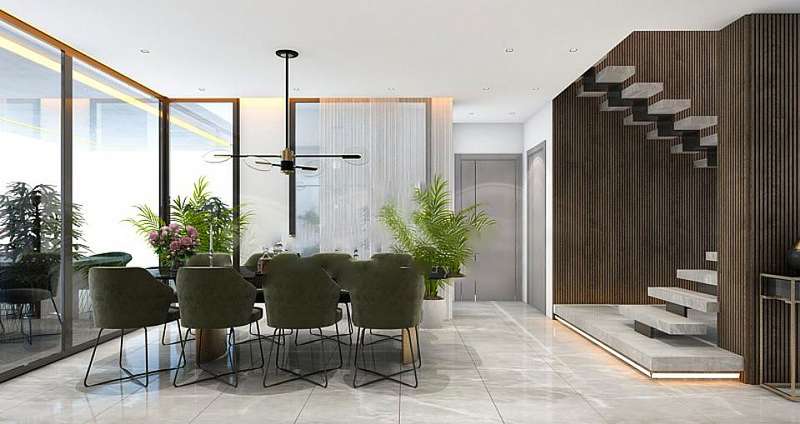 These stylish villas for sale in Kusadasi are close to daily amenities and the sea. They are also 120 meters from private schools and sports schools, 600 meters from gross markets, restaurants, and cafes, 650 meters from the shopping center, 2 km from the beach and the sea, 5.7 km from the Ladies Beach, 8 km from hospitals, 9 km from Kusadasi marina, 18 km from Guzelcamli National Park, 23 km from the ancient city of Ephesus and 73 km from Adnan Menderes Airport.