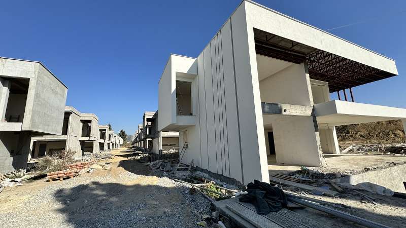 The stylish 2-storey villas have a living room, open-plan kitchen, spacious bedrooms, en-suite bathroom, dressing room and balcony. They are equipped with underfloor heating systems, air conditioning infrastructure, natural gas, energy-efficient aluminum joinery window systems, wooden and ceramic floor coverings, quality brand and stylish design steel exterior doors, lacquered kitchen cabinets, and interior room doors.