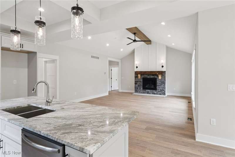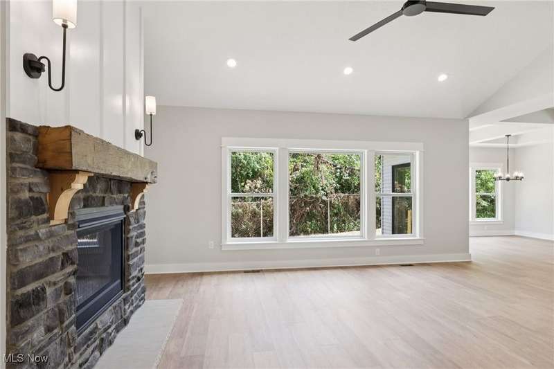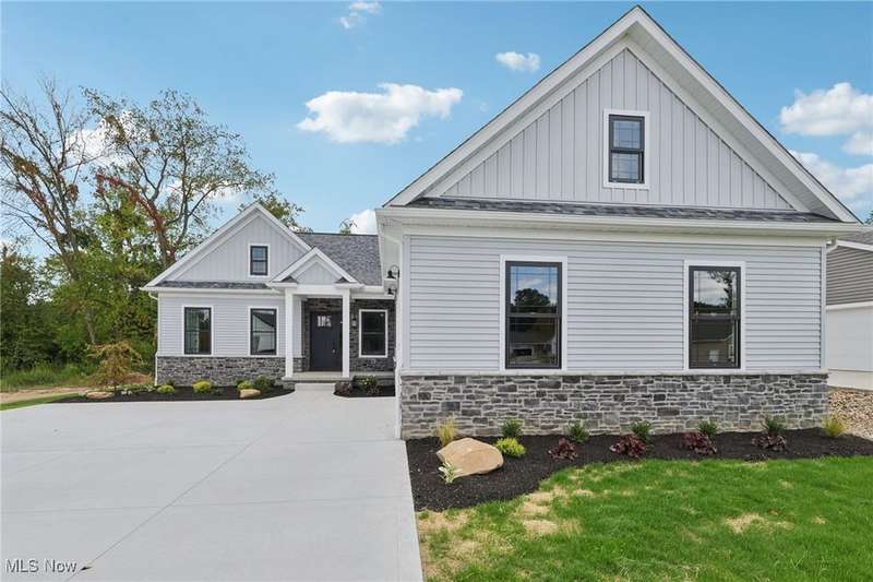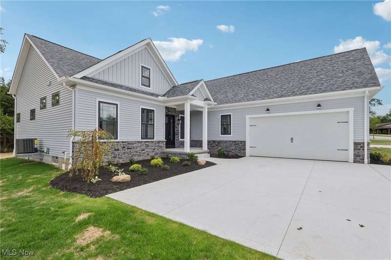 New Construction. High end luxury finishes with exceptional craftsmanship throughout. Gorgeous Craftsman style with 9 ft ceilings. Great room with fireplace and cathedral ceiling. Open concept floor plan. Kitchen and dining with coffered ceiling. Custom finished throughout with Wainscot, Crown molding and extra-large trim. Wide hallways, and generous sized rooms. Fabulous Owners suite with cathedral ceiling, luxury bath and big walk-in closet. Granite or quartz counters throughout. White oak LVT flooring. Courtyard entrance garage for maximum curb appeal. Extra high basement ceiling will accommodate 9 ft finished ceilings. Rough plumbed for extra bath in basement. Very large laundry room with custom cabinetry. Family entrance from garage with large area for everyday items and a large closet. Pantry too! Completion expected by end of August. Stop in and see one of the most beautiful homes in the area. Builder's agent must accompany all buyers and agents. Home buyers are eligible for a 15-year Community Reinvestment Area tax abatement, which means they will not have to pay property taxes for 15 years!