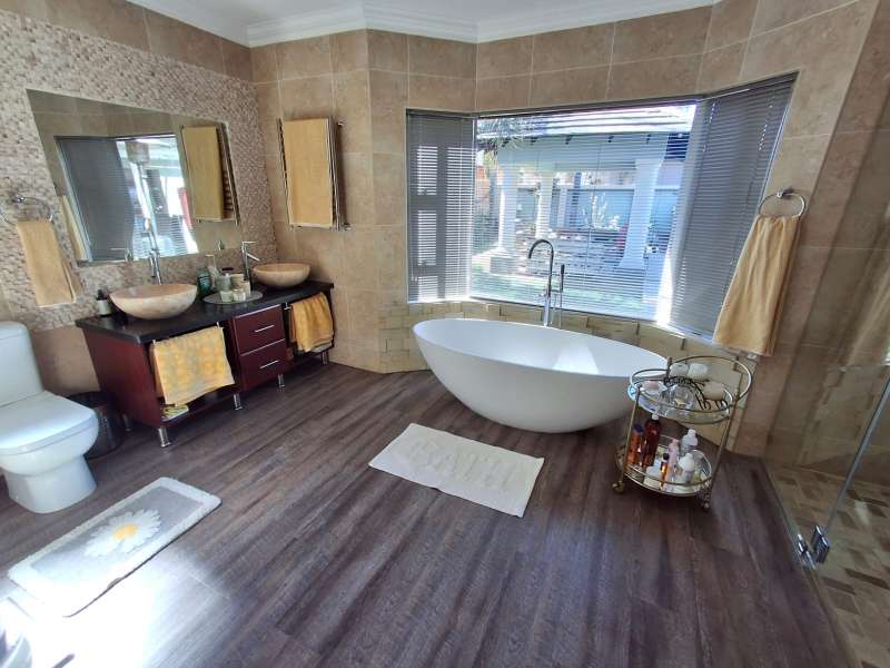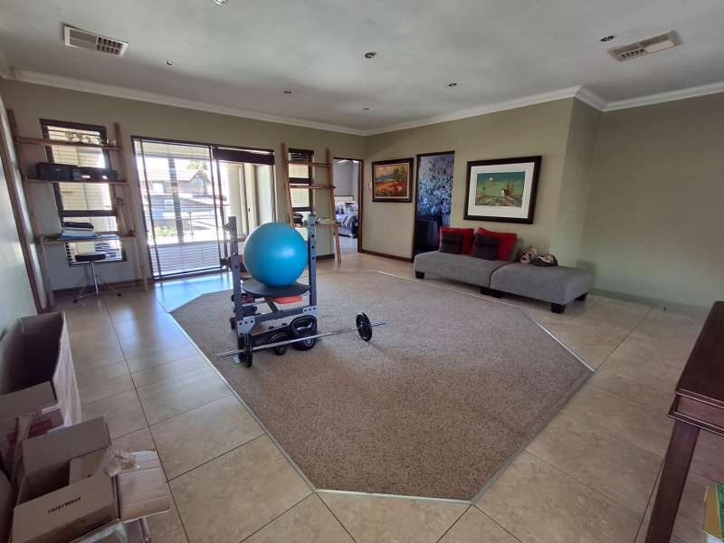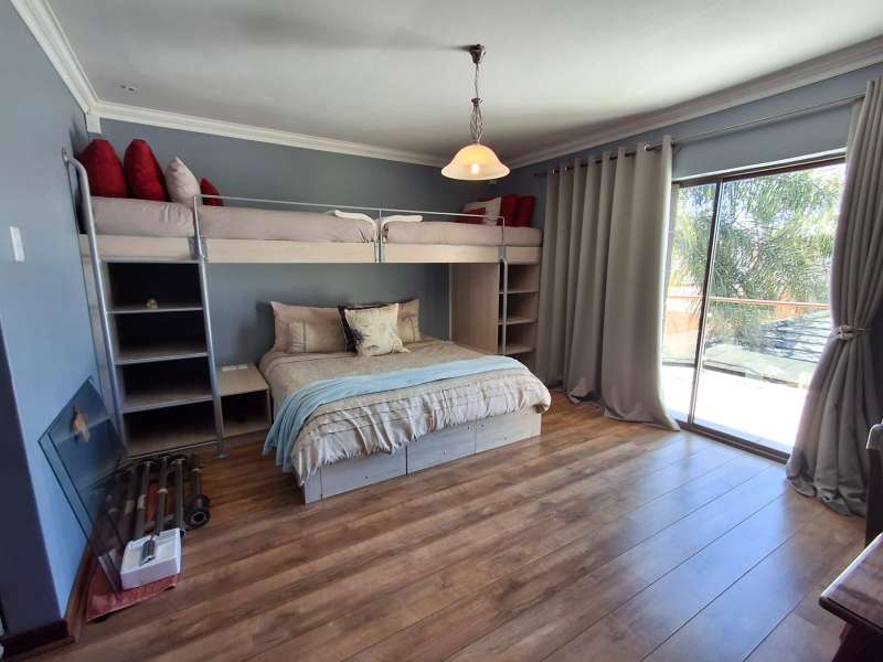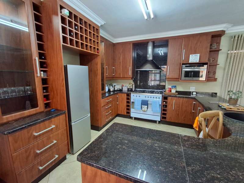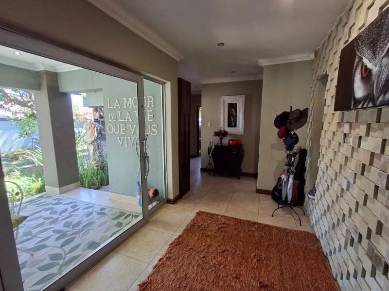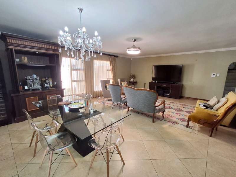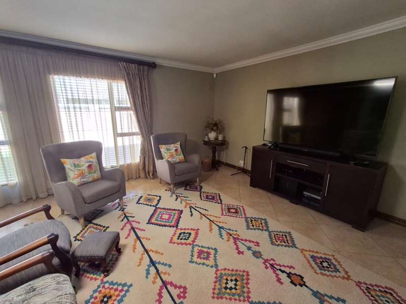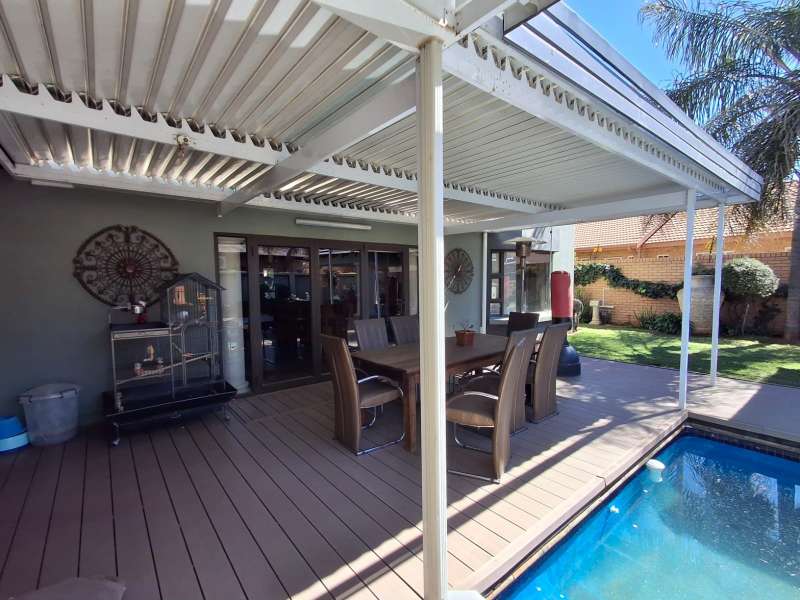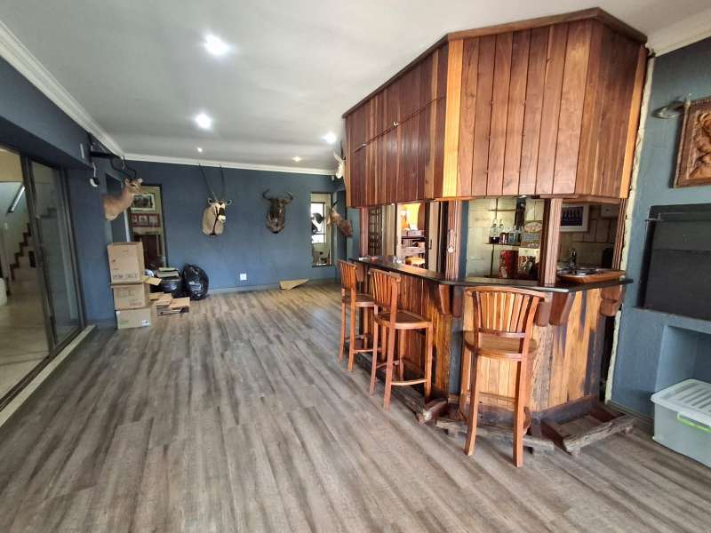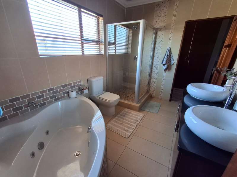 Experience contemporary family living in this beautifully designed double-story home, ideally located in a quiet and sought-after area close to the hospital, shopping mall, and top schools. Offering both luxury and practicality, this home ensures a safe, convenient, and exclusive lifestyle. 4 Spacious Bedrooms & 3 Bathrooms – perfectly suited for a growing family. Open-Plan Living Areas – seamless flow between the kitchen, dining room, and TV lounge, enhanced by a cozy gas fireplace. Modern Kitchen – sleek and minimalist with premium finishes, complemented by a scullery and pantry. Indoor & Outdoor Entertainment – built-in braai and bar areas, flowing out to a sparkling swimming pool and entertainment-ready backyard. 8-Panel Solar System with inverters (1o kw) ensuring uninterrupted power supply and energy efficiency. Security & Extras – fitted with CCTV cameras, two 2,500-liter Jo-Jo water tanks, and an outdoor wendy house with bathroom for added convenience. Designed for effortless indoor-outdoor living, the home’s large sliding doors open directly onto the entertainment and pool area, making it the perfect space for family gatherings or hosting friends. Double Garage – ample space for vehicles and storage This home truly combines modern elegance with functional living – ready for you to move in and enjoy.