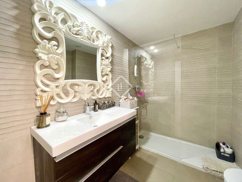 Stylish 2-Bedroom Apartment with Terrace and Views in Pau 5 Welcome to this beautifully renovated 2-bedroom apartment located in the heart of Pau 5—one of the most desirable residential areas known for its green spaces, modern infrastructure, and serene lifestyle. Meticulously updated with an eye for design, this apartment blends elegance with functionality, featuring a minimalistic modern style that is both timeless and sophisticated. From the moment you step inside, you’ll appreciate the clean lines, soft color palette, and carefully chosen finishes that create a calm and inviting ambiance throughout the home. The layout has been thoughtfully divided into two distinct areas: a private zone with the bedrooms and bathrooms, and a generous open-concept living area designed for comfort and social gatherings. The spacious living room flows seamlessly onto a large terrace—perfect for relaxing on the comfortable outdoor sofa, enjoying a morning coffee, or entertaining guests while taking in the sweeping views of the beautifully landscaped urbanización. This lush residential complex includes a communal swimming pool, sun loungers, and a peaceful rest area surrounded by greenery. The modern kitchen is fully equipped with high-end appliances and plenty of storage, offering a sleek and functional workspace for everyday cooking or hosting. Every detail, from lighting fixtures to cabinetry and countertops, has been carefully selected to complement the home’s contemporary aesthetic. Both bedrooms are generously sized and can easily accommodate double beds. The two stylish bathrooms are fitted with quality fixtures and finishes, providing convenience and comfort for residents and guests alike. For year-round comfort, the apartment includes a built-in climate control system with integrated heating and cooling, ensuring a perfect indoor temperature in every season. Additional features include a private storage room and a dedicated parking space, adding convenience and value to this exceptional property. Whether you’re looking for a tranquil home close to the beach and all amenities, or a smart investment in a growing and vibrant neighborhood, this apartment in Pau 5 is a rare find. A harmonious blend of design, comfort, and lifestyle—ready to be enjoyed.