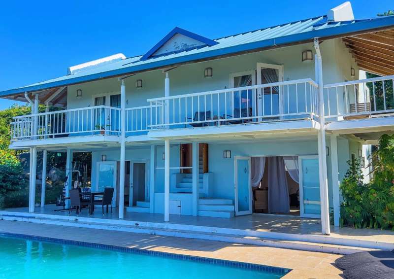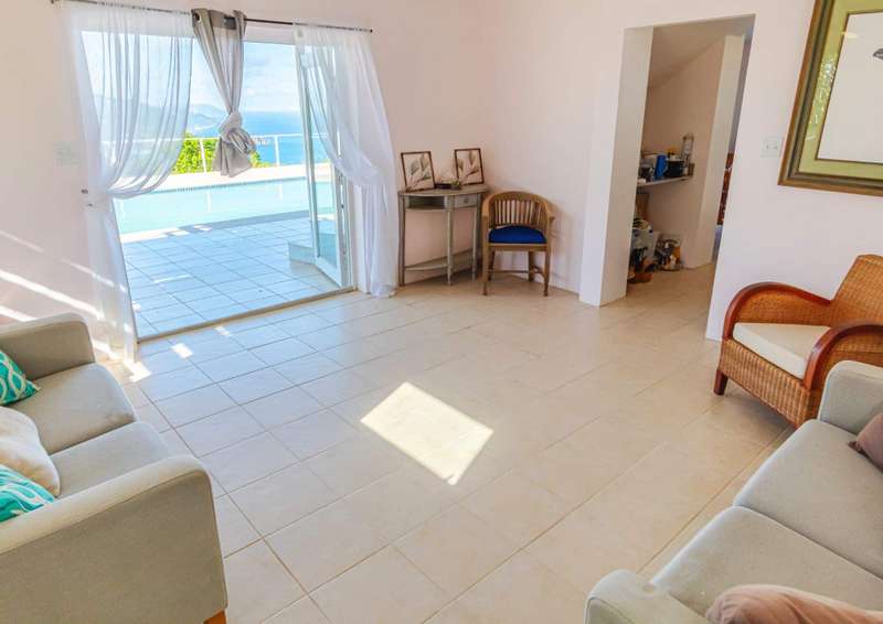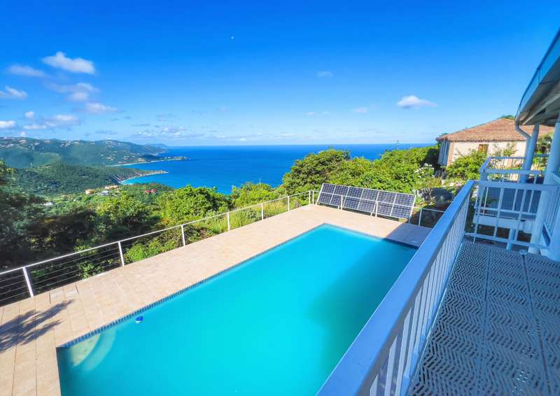The property is situated on 0.5 acres on the boundary between Lambert and Balsam’s Ghut, with sensational 180 degree views capturing the North Shore from Little Bay to Rogue’s Bay Point and across Fat Hog’s Bay to the South . ; The property is arranged over 2 floors: Ground Floor has a kitchen (with laundry room/half bath annexed) and interconnecting living room. Both rooms open onto a substantial pool terrace with large swimming pool (operated by a bank of solar panels). Both the kitchen and living room could be extended out onto the terrace to increase the internal sq footage. ; First floor has 2 ensuite bedrooms, both opening onto a deep balcony. There is an attic space above the first floor, which could be expanded into. The garden is partially landscaped around the house and pool, with the foundations and remains of a gardener’s shed, with potential as a gazebo or even a guest bedroom suite. Gated entrance. Ample parking. Substantial area of uncleared land below the house.