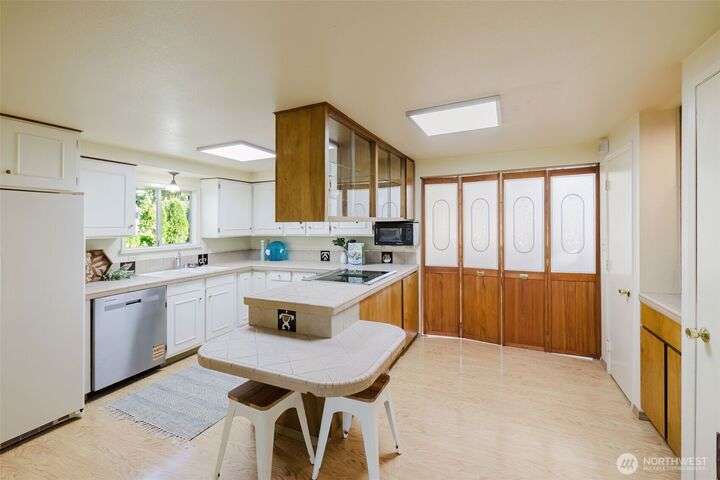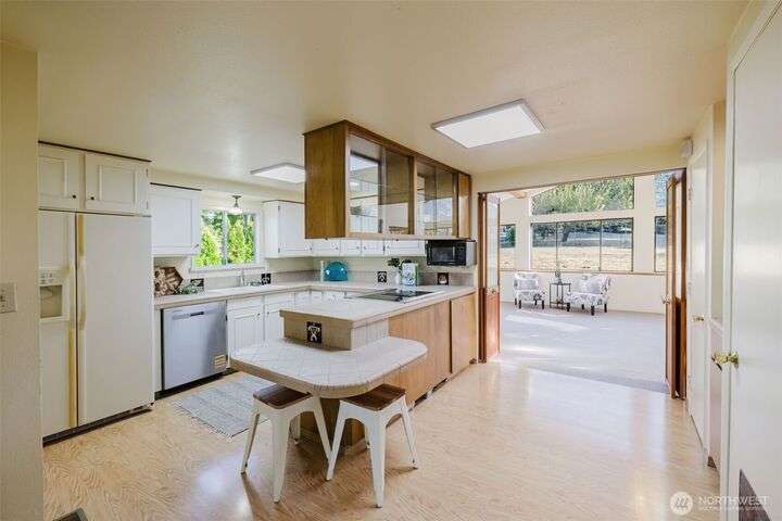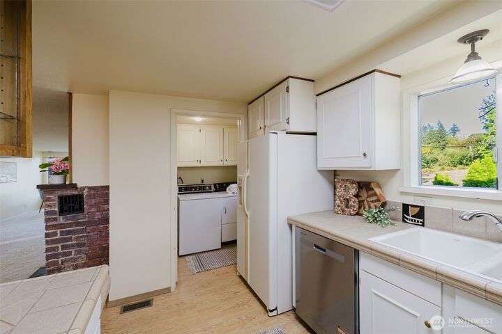 Welcome to this charming 2-bedroom home offering oversized living spaces and abundant natural light, thanks to large windows and a skylight tube. Recently updated with fresh exterior paint and new electrical panel, this home is cozy and efficient—featuring a wood stove insert that warms the entire house. The detached 1-car garage includes a shop/storage area for extra functionality. Enjoy mature landscaping with fruit trees and extra parking off of side street. Conveniently located near an elementary school and just minutes from the Southworth/West Seattle Ferry. Partial sound views complete the picture!