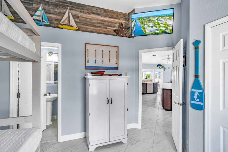 STUNNING 3 BEDROOM 3 BATH TURN KEY LUXURY HOME THAT IS CURRENTLY A FULLY FURNISHED TURN-KEY, vacation rental in the Florida Keys. This beauty offers luxury living & a highly profitable business. Generating six figures annually! Semi-private boat ramp, 174 FT DOCK, DEEP & WIDE CANAL accommodating multiple boats with direct access to the ocean, & easy commute to bay side. Gourmet chef's kitchen, plush furnishings, garage, huge storage with electric & stunning waterfront views.The two main suites have king beds, 3RD includes a queen-over-queen bed & a full trundle. ENORMOUS dock has a fish cleaning station, electric, and water. Nearby attractions include SOMBRERO BEACH, airport, dolphin swims, scuba, playgrounds, & restaurants. Seize this opportunity to live and invest where others vacation!