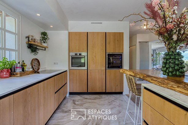 Des l'entree, la lumiere, les volumes genereux, et les sols en parquets massifs ou en beton cire, mettent en valeur une renovation chaleureuse ou le bois, les lignes et les materiaux contemporains, et les ouvertures se marient avec elegance.