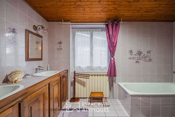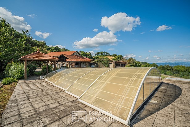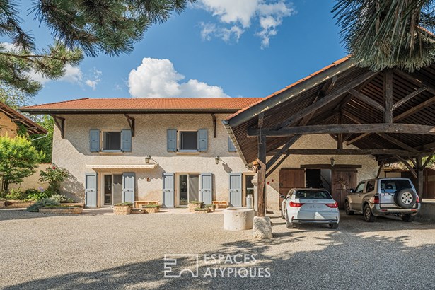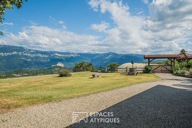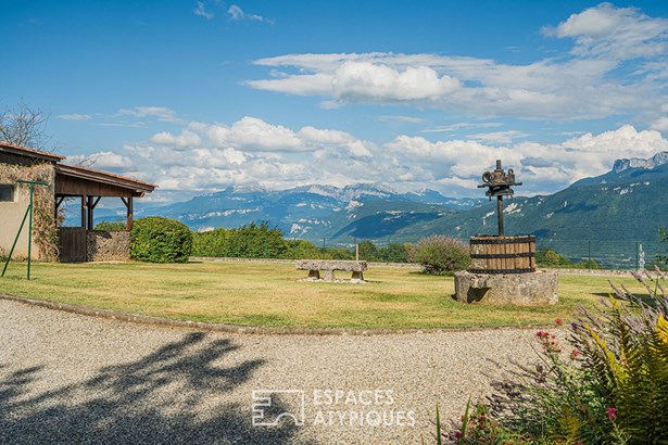 On a hillside, facing a striking panorama of the surrounding mountains, this old adobe farmhouse dating from the 19th century offers an exceptional living environment. Located at an altitude of 525 m, between Tullins and Vinay, this well-kept property is set in a preserved bucolic environment, with the Chartreuse and Vercors mountains as a backdrop. Its entrance porch, elegant facade, light blue shutters, and covered courtyard give the place authenticity and charm in a landscaped setting with impressive perspectives.