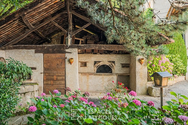 The plot of over 2,700 sqm, flat and beautifully landscaped, offers numerous outdoor spaces and amenities such as its vast gravelled courtyard, its large covered courtyard, its bread oven, its pond and its large workshop. An old concrete swimming pool judiciously positioned facing the reliefs is just waiting to be put back into operation and a 30,000 liter rainwater recovery tank accompanies the whole.