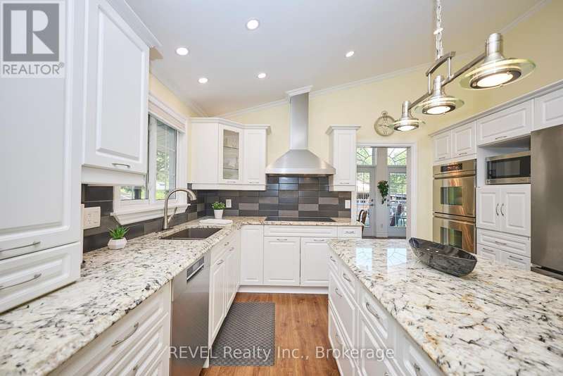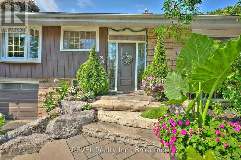 Simply breathtaking! Situated on an incredible 75 by 200-foot lot, 51 Pancake Lane offers comfort, style and space in equal measure! From the moment you arrive, the curb appeal is undeniable. A long driveway leads to a double-car garage, while stone steps framed by lush landscaping guide you to the front entrance. A charming wrap-around balcony spans the front and side of the home, creating an ideal spot to enjoy your morning coffee or unwind in the evening, surrounded by the beauty of picturesque Fonthill. The main floor is as inviting as it is functional. The bright living room features soaring ceilings, expansive windows that fill the space with natural light and a stunning gas fireplace. Opening to the dining room, with direct access to the balcony for a seamless indoor-outdoor experience, this space is intriguing. With two ovens, granite countertops, abundant cabinetry, an island, along with a lovely dining area, the kitchen is a true highlight of this home. Positioned at the back of the home, the primary suite offers a peaceful retreat with its own ensuite. Concluding the tour of the main floor is a beautifully updated 3-piece bath and two additional bedrooms, each with large closets, ensuring comfort and privacy for the whole family. Featuring a spacious recreation room, fourth bedroom, 4-piece bath and laundry room, all with plenty of storage and direct access to the garage - the lower level of this home is truly the cherry on top! Out back, the fully fenced yard, with a full irrigation system, offers a private oasis that has been beautifully curated. With mature trees, several seating areas and a gorgeous solarium equipped with hydro, this space offers a true extension of the home. Immaculately maintained and extensively updated, this property is perfectly positioned only moments from wonderful schools, shopping and scenic trails - combining everyday convenience with timeless charm. This is where your search ends and your next chapter begins - welcome home! (id:7434)
