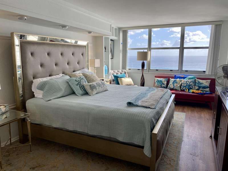 Sensational 15th flr 2BR-condo overlooking the crystal blue waters of the Atlantic Ocean & pristine beaches of Singer Island. Open floor plan modernized w/quartzite counters, new SS appliances, wine cooler, ice machine, private washer & dryer, plank flooring & private balcony w/panoramic views of the morning sunrise. Split floor plan offers versatility & privacy. The Corniche has been meticulously maintained & updated. The Corniche amenities include relaxing garden area, oceanfront pool area & summer kitchen with gas grills. Further enjoy the full-size tennis court, card rooms, billiards room, fitness center (his & her saunas), spacious owner's lounge with bar, kitchen & big screen TV. Covered parking. 24-hour front desk attendant. Recently renovated, open flr plan, fabulous ocean view.