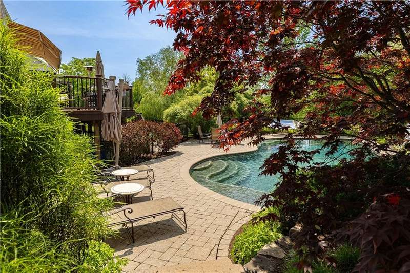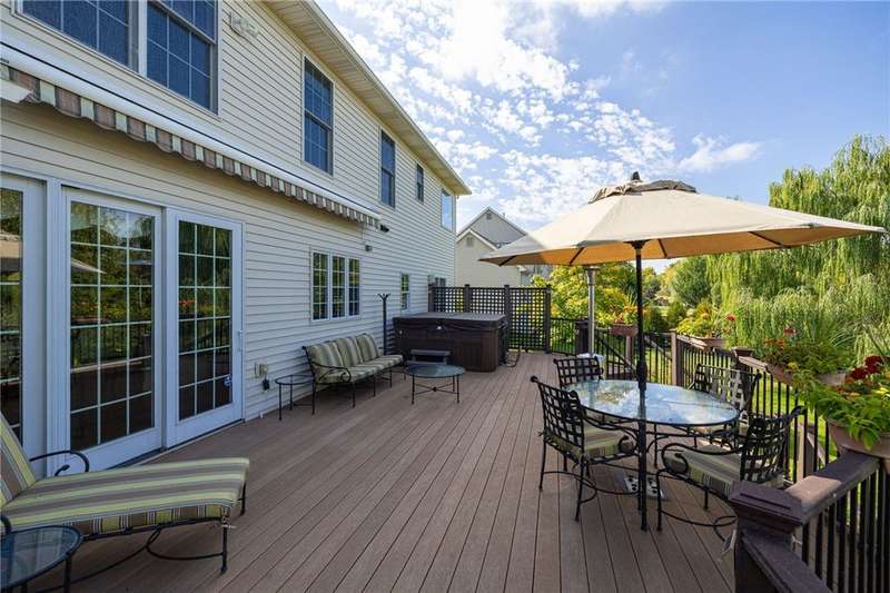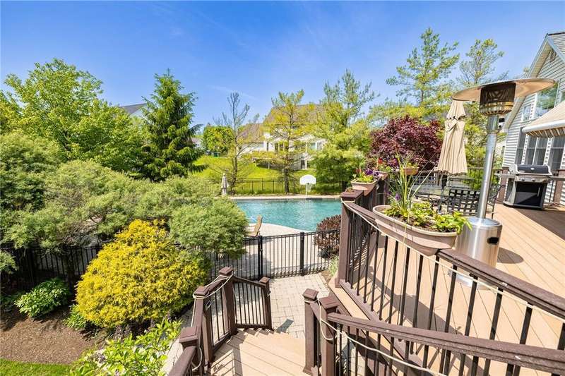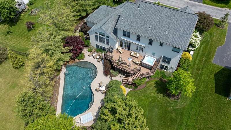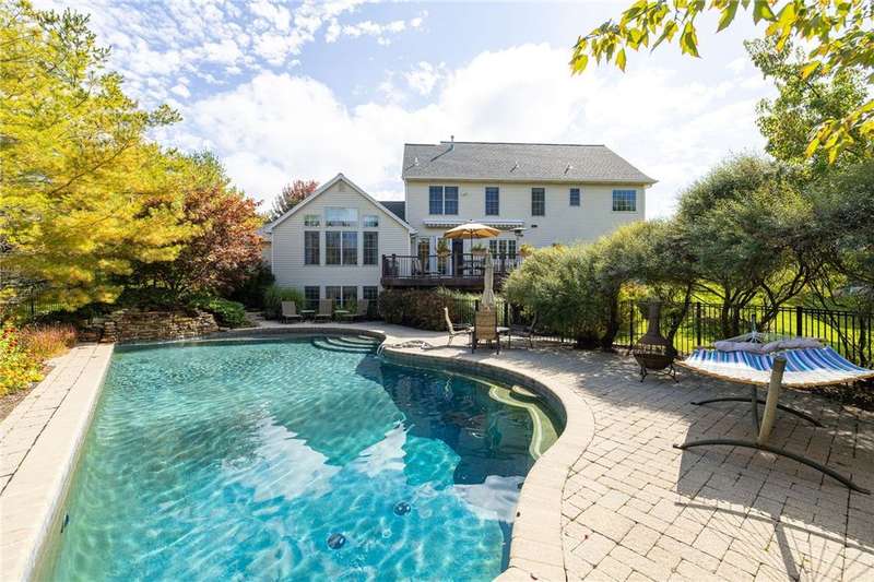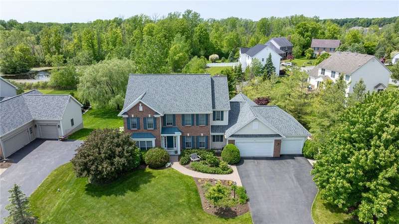 This custom Spall-built home strikes just the right balance between luxury lifestyle and traditional quality that's simply hard to find these days. It's impossible to miss the striking brick exterior and gardens bursting with a color and texture, but wait until you see the interior! This center-entrance colonial will sweep you off your feet, with gorgeous hardwoods, floor-to-ceiling windows and custom detailing throughout. The open layout makes for easy living and entertaining. A bright, updated kitchen opens to the expansive deck overlooking the built-in Gunite pool, gorgeous landscaping and view of the pond and natural surroundings. Take in dinner, drinks or lounge in the hot tub on the deck...or go pool side to take a dip, maybe nap in the hammock, or read a book while listening to the waterfall. Living here is literally like being on vacation in your own home. Extras include custom built-ins, storage galore, 3 car garage, 1st floor laundry, 2 gas fireplaces, huge finished lower level with a professionally finished fitness area, a huge rec room and the potential for an additional bedroom if an egress window were added. Built-in generator 2016. Whole-house Sonos system. Roof 2019. H20 2015. HVAC 2013. Delayed negotiations will be in effect, with offers due on September 29th at 2pm. Client requests that no escalation offers be submitted.