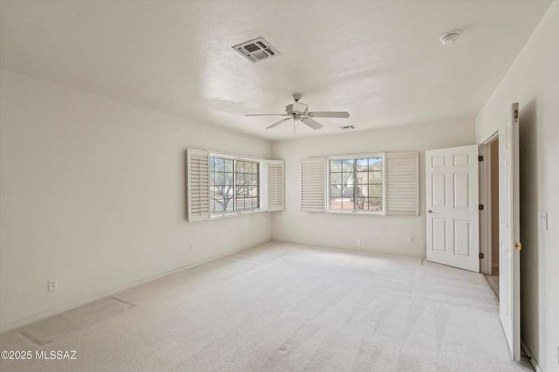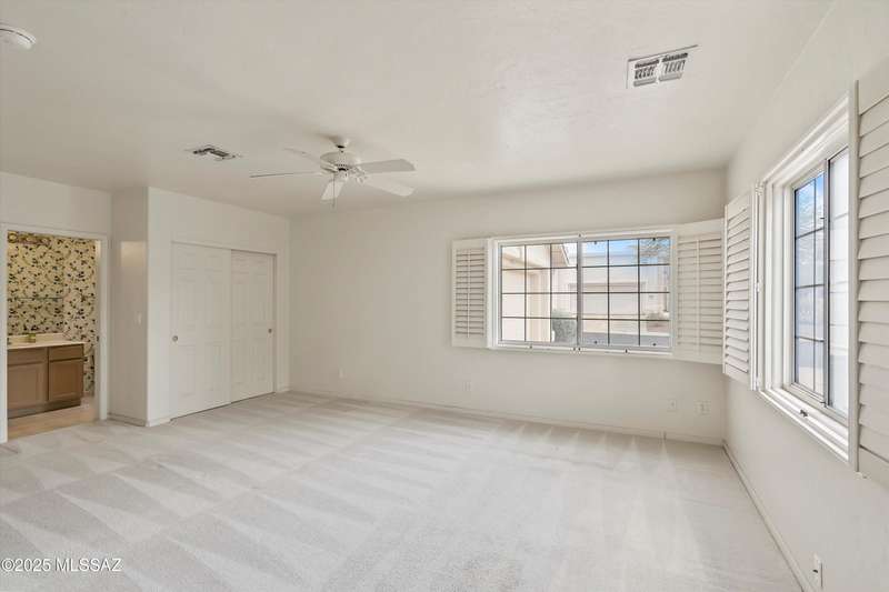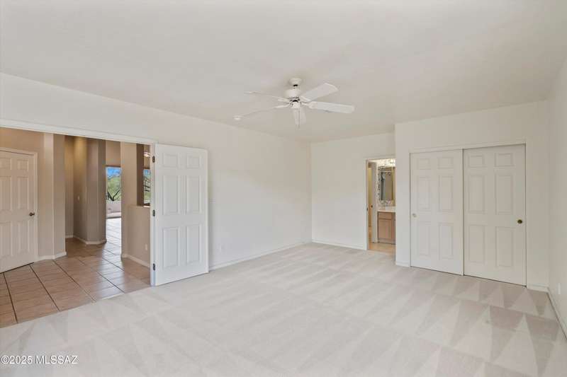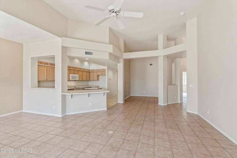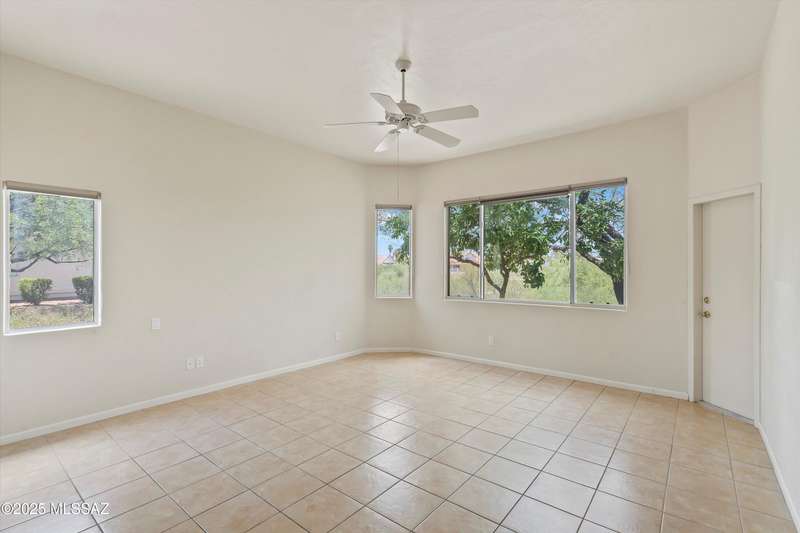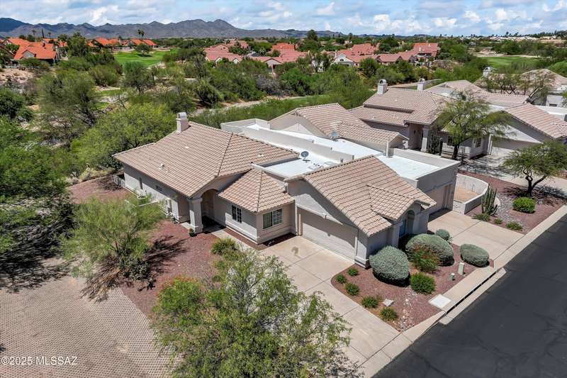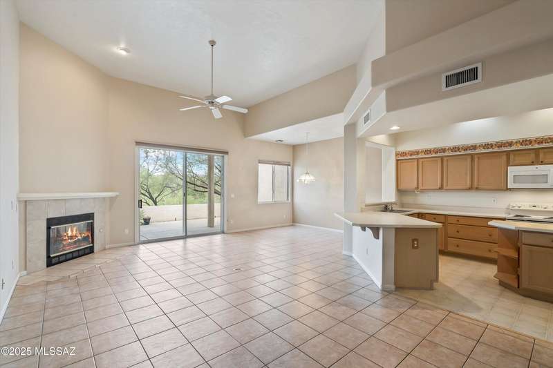 Step into this bright and spacious 2BD/2BA (1950 sqft) retreat in Oro Valley gated community of Carmel Pointe. NEW ROOF! No neighbors behind ensures complete privacy and golf course views. Enjoy resort style living just steps from the Community Center with two 18-hole golf courses, pickleball and tennis courts, fitness center, pool, clubhouse and more. The open concept features a welcoming great room with cozy fireplace, seamlessly flowing into the dining area versatile den or home office. The chef's kitchen offers abundant cabinetry, generous countertops and a center island. The expansive primary suite boasts private patio access, ensuite bath with dual vanities, soaking tub and walk-in shower and closet. Spacious guest room connects to a full bath ensuring comfort and convenience for