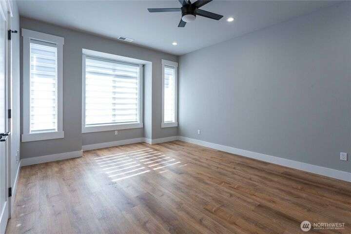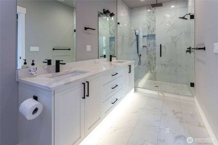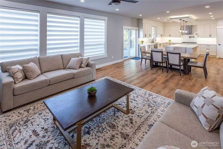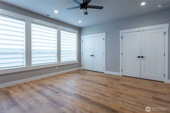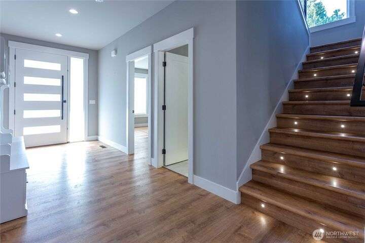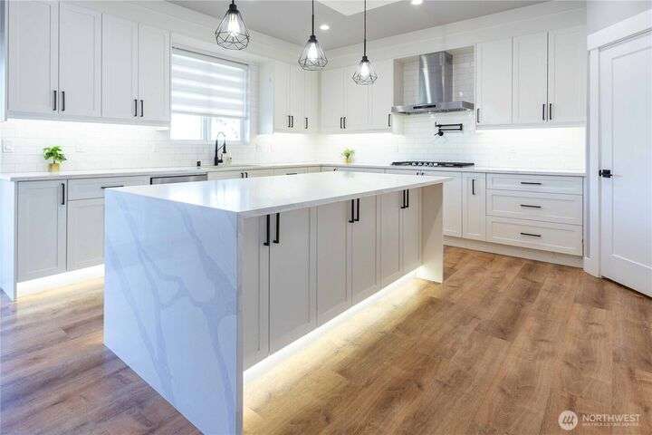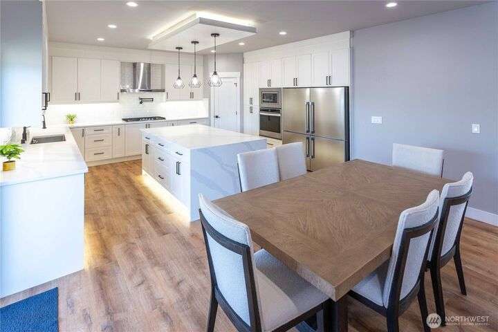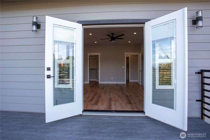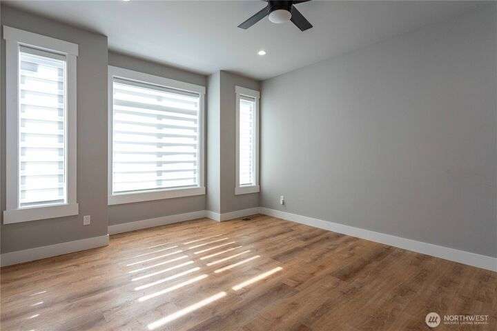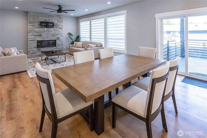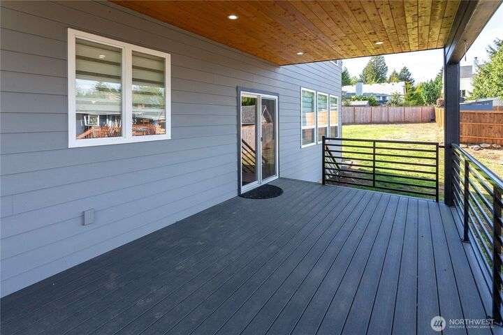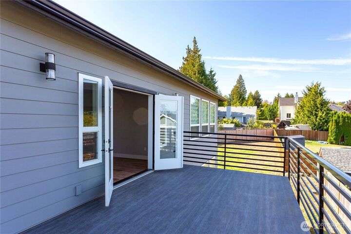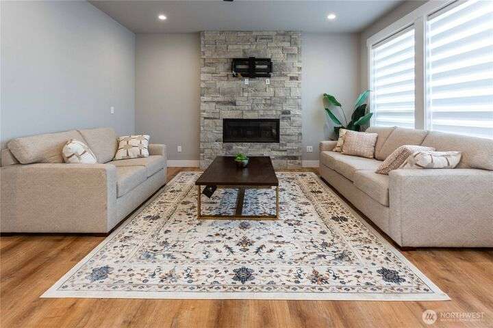 Located at the end of a quiet cul-de-sac, this 5 bed, 3 bath, 2,760 sqft home in a newer development offers modern style & functional design. 1 bedroom and 3/4 bath on the main floor provide flexibility for guests or multi-gen living. Features include quartz countertops, under-cabinet lighting, pot filler, gas fireplace, tiled showers, & an open floor plan with no carpet throughout. Stay comfortable year-round with A/C. Enjoy a fully fenced backyard with covered deck, and a private deck with French doors off the primary suite. Finished 2-car garage, nearly 1/4-acre lot, & premium finishes throughout. Conveniently located near schools, parks, & downtown Ferndale. Don't miss this move-in-ready home with high-end touches in a prime location!