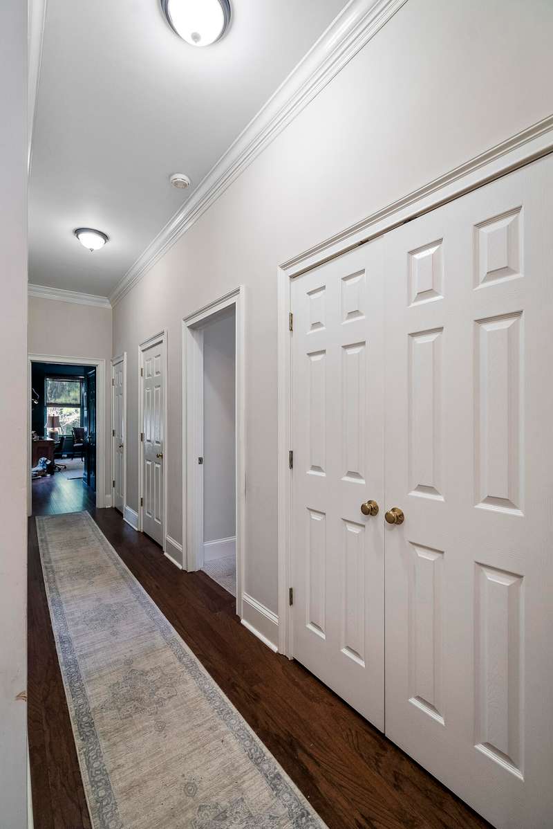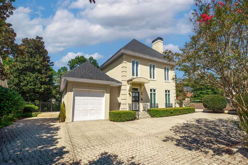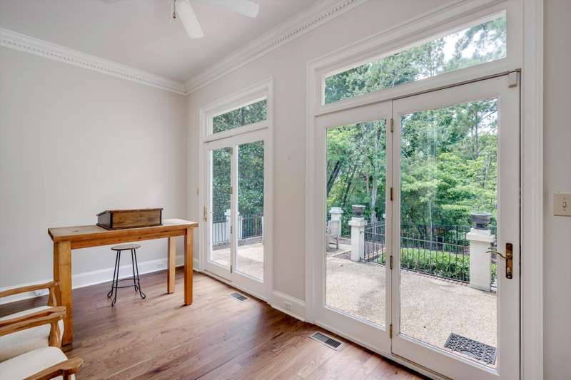 Nestled privately on coveted Charles Towne Place - a quiet cul-de-sac street n Aiken's premier gated golf and country club community, this exquisite home combines timeless elegance with modern convenience and exceptional craftsmanship. Located in the heart of Woodside, 116 Charles Towne Place offers stunning finishes, sophisticated interiors, and beautifully designed outdoor living spaces. As you approach, a generous parking court welcomes you home. The elegant front entrance is framed by a striking New Orleans-style iron door, setting the stage for the refined interiors to come. Inside, you'll be greeted by a formal foyer with marble tile floors, soaring ceilings, and extraordinary architectural details including dentil crown molding and handsome wood floors. The spacious living room is anchored by a wood-burning fireplace and flanked by floor-to-ceiling windows with transoms that flood the space with natural light. Just beyond, a charming library/study offers built-in cabinetry, a wet bar, and a stylish wallpaper accent wall —perfect for intimate gatherings or quiet reading. Down the hall, you will find a chic powder room with designer wallpaper land a doorway to the beautifully updated chef's kitchen, complete with Marble-look granite counters, Matte glass tile backsplash, an abundance of cabinetry, GE Café Smart appliances with brushed bronze door pulls, including 5-burner gas island cooktop, convection oven, French door refrigerator with Keurig® dispenser, and more. Adjacent to the kitchen, a sunlit breakfast room opens to the Chattahoochee stone terrace, ideal for enjoying morning coffee while overlooking the peaceful woodland backdrop. The formal dining room accommodates both round and rectangular tables, while an adjoining sunroom offers another lovely transition to the terrace. The fenced backyard and low-maintenance garden rooms provide tranquil outdoor escapes. On the main level, a primary bedroom suite, currently serving as a handsome den, features rich Hunter Green paint, a walk-in closet, and ensuite bath with walk-in tub/shower. A second spacious bedroom suite and three hallway closets, including a cedar closet, complete the main floor. Upstairs, discover a second private primary retreat with a sitting area, 2 walk-in closets, and a spa-like bath with Jacuzzi tub, dual vanities, and a new serene blue-tiled shower. A bonus room—perfect as a nursery, office, gym, or craft space—completes the upper level. Additional features: 2019 roof, two 2020 HVAC systems, high-speed internet, natural gas, termite bond, abundant storage including built-ins, walk-in attic, large closets, Main floor laundry with walk-in pantry and garage access Residents may join Woodside Country Club or The Reserve Club, enjoying access to golf, tennis, pickleball, dining, social events, and more. Just minutes from essential shopping, and a short drive to Aiken's vibrant downtown, equestrian venues, and cultural attractions. Don't miss the opportunity to make this refined, move-in-ready home your own. Schedule your private showing at 116 Charles Towne Place today!