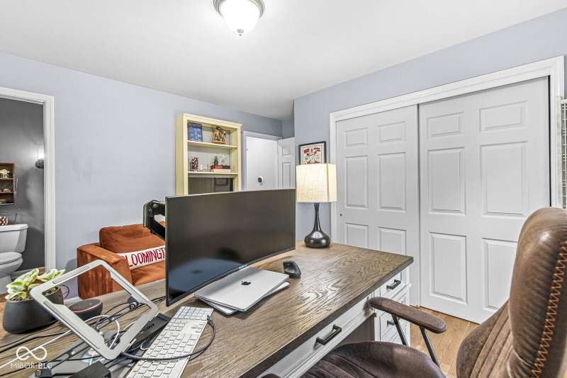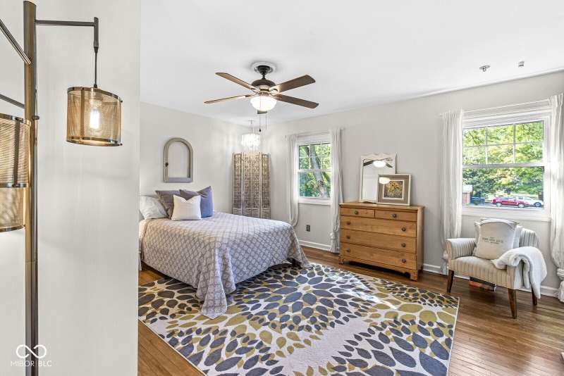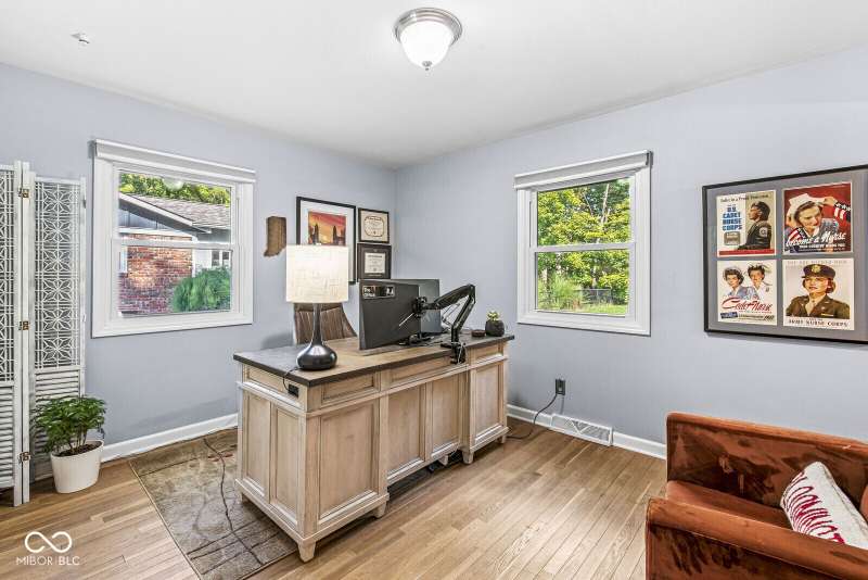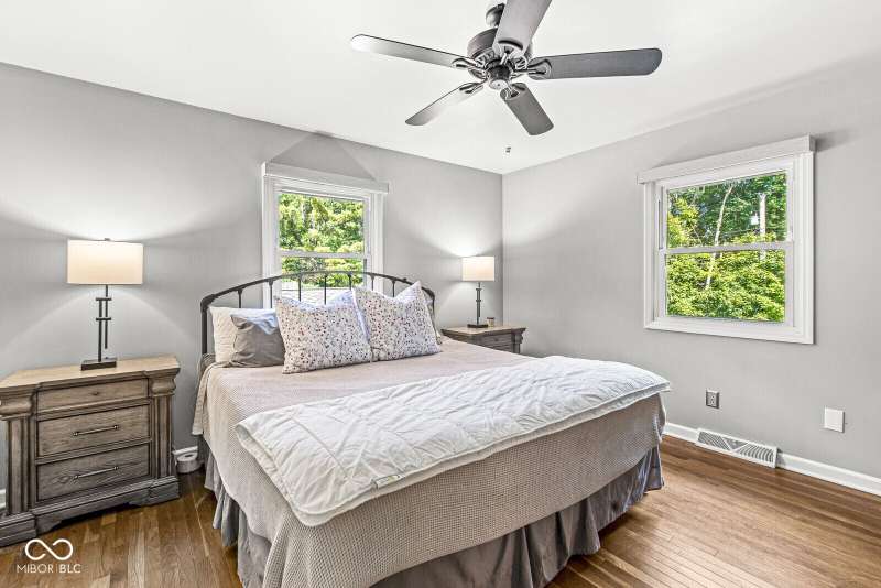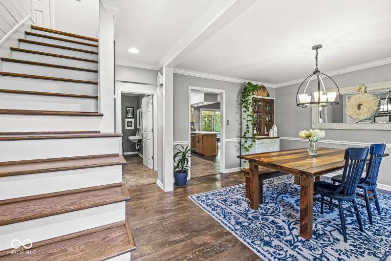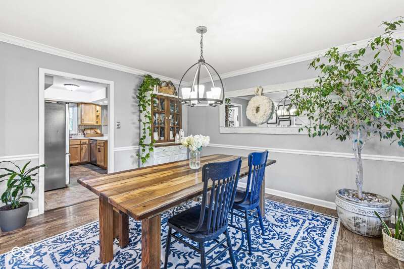 This charming home boasts timeless curb appeal and thoughtful updates throughout. Beautiful hardwood floors flow seamlessly through every room. The kitchen features stainless steel appliances, solid surface countertops, and a convenient coffee bar, with an adjoining breakfast nook plus a formal dining room for gatherings. Multiple living spaces include a formal living room and a cozy family room with a wood-burning fireplace-perfect for relaxing or movie nights. A main-level bedroom (currently used as an office) offers flexibility for guests or work-from-home needs. Upstairs, the spacious primary suite includes a private bath, along with three additional bedrooms and a full hall bath. The basement offers far more space than listed, with approximately 720 sq. ft. of finished space and an additional 720 sq. ft. unfinished, ideal for storage, hobbies, or future expansion. Enjoy outdoor living in the fenced backyard with mature trees and a patio, perfect for pets and entertaining. Conveniently located with quick access to Keystone and I-465. Wood swim club can be joined for $400 which includes swim club, pool, pickleball and tennis.