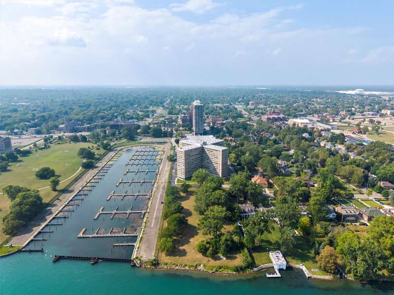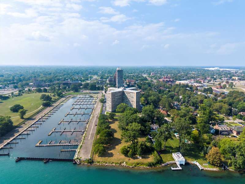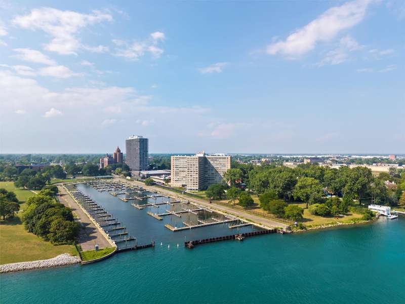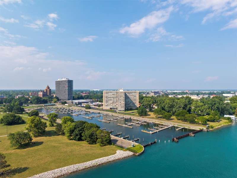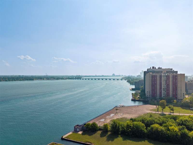 Experience luxury living in a stunning high-rise along the riverfront in Detroit. This unit, recently renovated in 2023 by Concetti Design and recognized with a Detroit Design Award for its remarkable "Rose Hues in River View," draws inspiration from the beauty of the Rhododendron flower. The vibrant color palette and panoramic views of the Detroit River create an unforgettable atmosphere. The kitchen boasts custom cabinets by Kurtis, Bosch stainless steel appliances, and exquisite Fantasy Brown Dolomite countertops with a leathered finish. Enjoy Mohawk engineered hardwood flooring throughout, with California Closets in the bedrooms. The HOA fee covers taxes, water, gas, electricity, and regular maintenance. This gated community offers a wealth of amenities, including a pool, gym, beauty salon, barber shop, boutique, and rentable conference room. With 24-hour front desk staff and security, this residence provides peace of mind. Located in the desirable Gold Coast, you're just a mile from the River Walk and close to local parks and shopping. Embrace riverfront living at its finest!