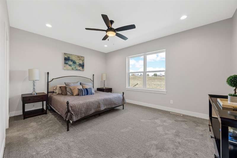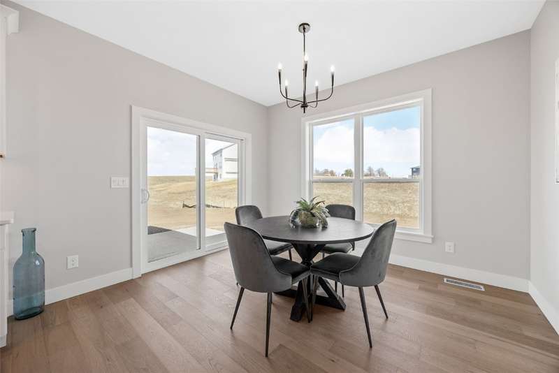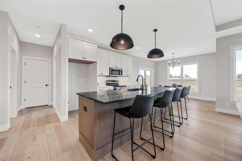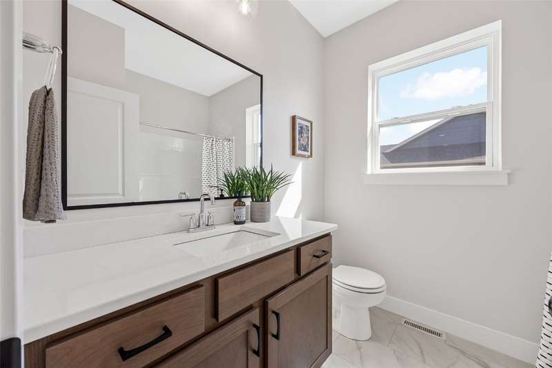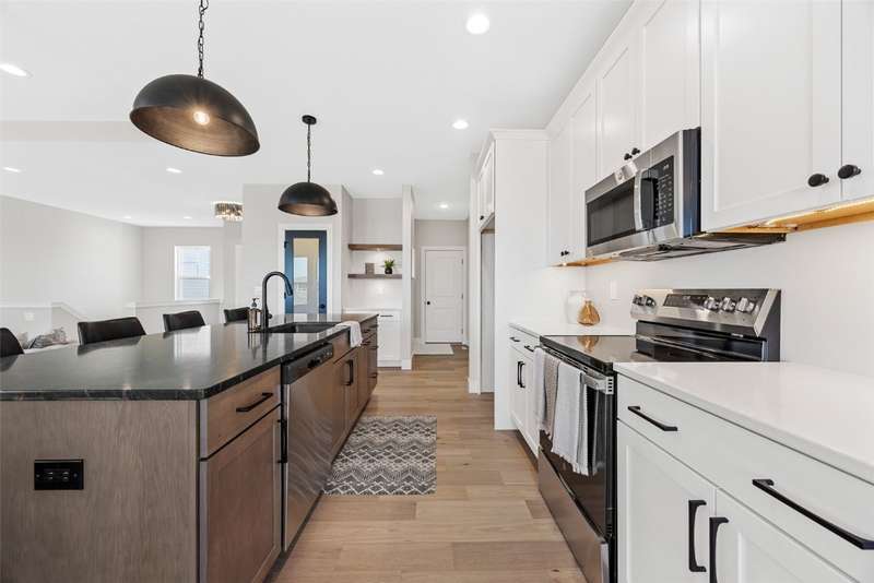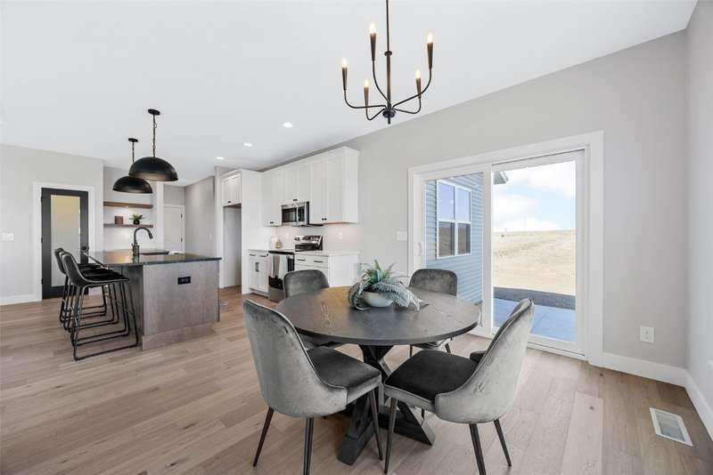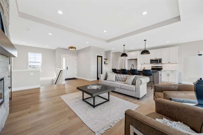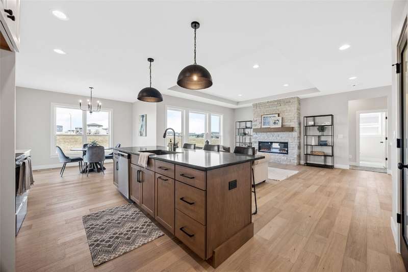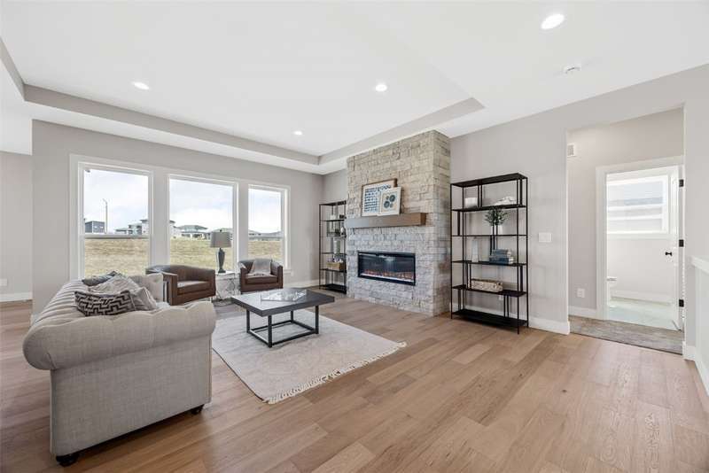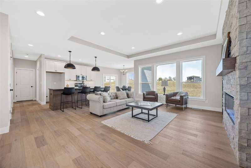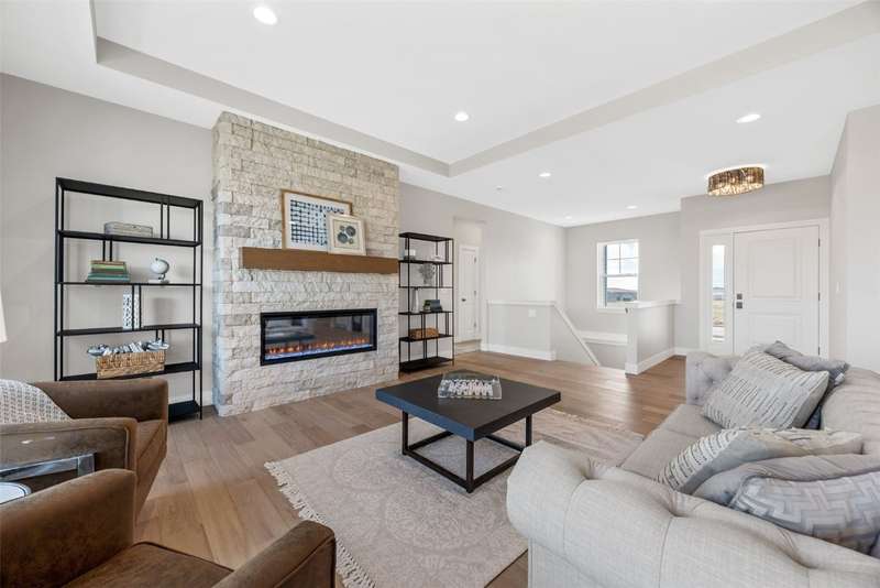 MOVE-IN-READY! This home features 9' ceilings, 10' trey ceiling in the great room, U-shaped stairs, white painted trim, quartz countertops, soft close cabinetry and a coffee bar, an electric fireplace and engineered hardwood throughout main living spaces. The laundry is located right off the primary bedroom and that leads you to the primary suite with large walk in closet and dual sinks. This property will also include a fully sodded yard, partial stone exterior, landscaping package, and more! The basement can be finished with an additonal bedroom, rec room and bathroom for $37,200. Contact agent to learn more or to inquire about building timeline. Sellers would consider a trade on this home. 10-Year builder warranty included.