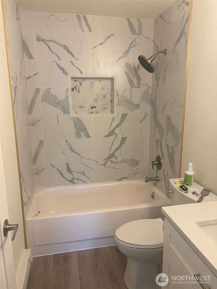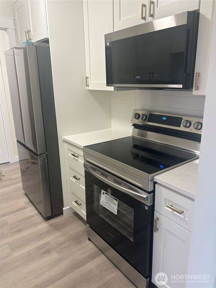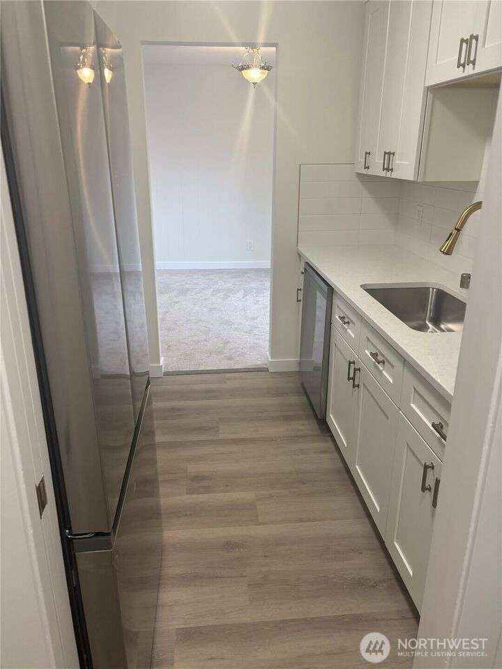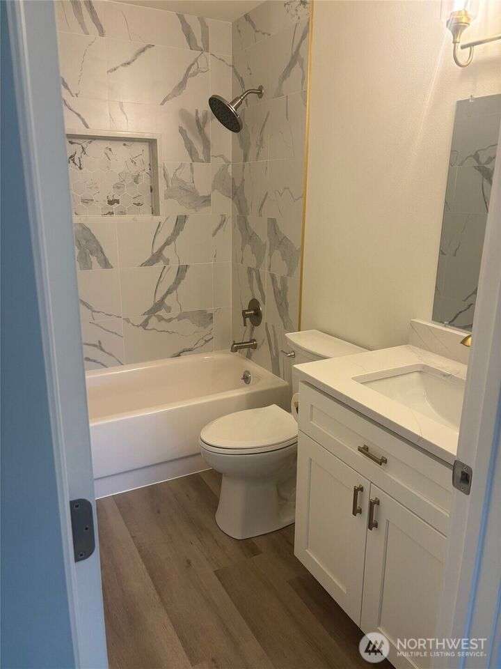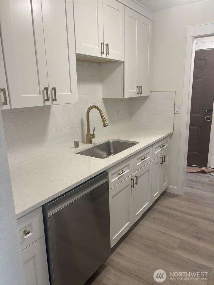 Fully updated! All new Flooring, paint, cabinets, appliances, lighting fixtures, solid core doors, trim, hardware, baseboards, Corian countertops, window treatments and water heater. This 2 bedroom 2 bath 2nd floor unit is a must see. Kitchen has all stainless steel appliances, with soft close cabinets and Corian countertops. Living area has a real wood burning fireplace with white washed brick surround and black granite hearth. Slider door in living room leads out to your large deck with view of court yard and access to your private storage area. There is also more storage downstairs and laundry room. Nice sized Master bedroom has private En Suite. Amazing location close I-5, hospital, park, shopping and restaurants.