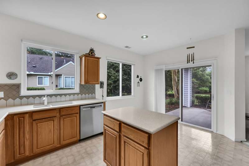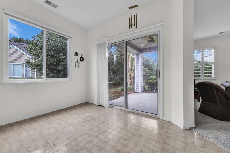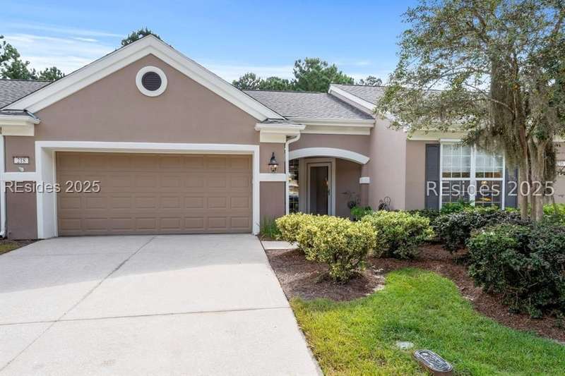 Welcome home to this charming 2-bedroom, 2-bathroom Dickinson villa tucked away on a quiet cul-de-sac in Sun City Hilton Head. This thoughtfully designed home offers spacious rooms throughout, including a kitchen with abundant cabinet storage, a center island, and a cozy eat-in area. The primary suite features a bay window and custom closet shelving, while the guest bedroom is generously sized for comfort.Enjoy versatile living with a den/flex room and a laundry room complete with sink and cabinetry. Outdoor living shines with both covered front and back porchesideal for relaxing or entertaining. An oversized two-car garage provides ample space for parking and storage. This home combines comfort, functionality, and Lowcountry charm.