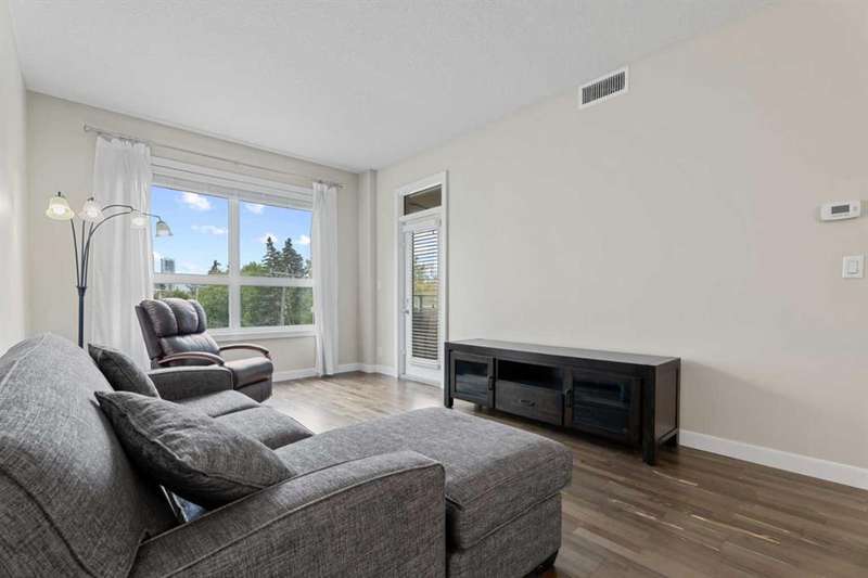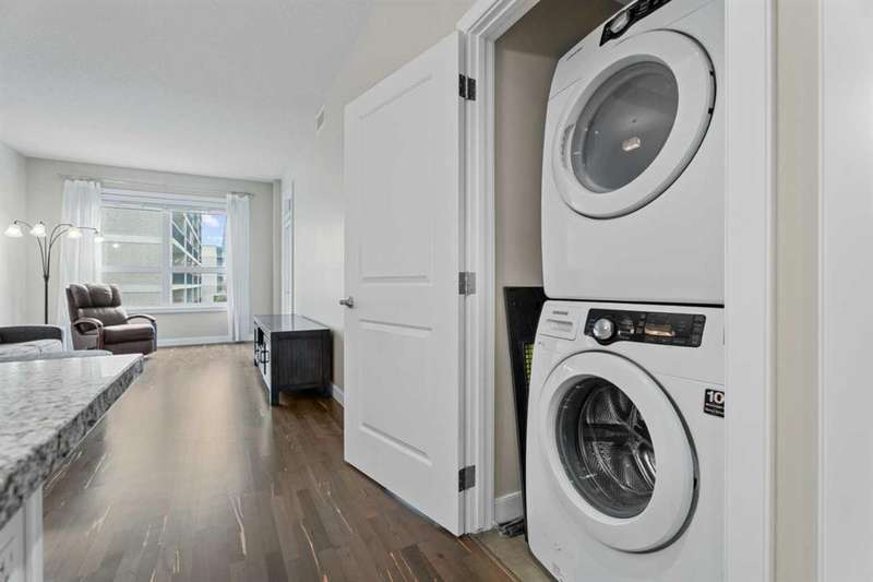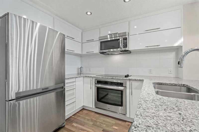 Welcome to your new home in the heart of Calgary’s vibrant Kensington community. Whether you’re after a walkable lifestyle, quick access to downtown, or the nearby LRT, St. John's on 10th Street puts everything you need just steps away—including parks, pathways, shops, and cafes. This spacious 1-bedroom condo offers high ceilings, air conditioning, in-suite laundry, and a south-facing balcony. The kitchen is outfitted with sleek white cabinetry, stainless steel appliances, granite countertops, and convenient bar seating. The open-concept living and dining area accommodates full-sized furniture and features easy-to-maintain laminate flooring. The bedroom fits a king-sized bed and includes a large window for natural light. A walk-through closet leads to a well-appointed 4-piece bathroom. For added convenience, the storage locker is located just across the hallway. St. John's on 10th is a secure, well-maintained building with bike storage and secure visitor parking. Reserved underground parking is available through ParkPlus for $210/month. You are just minutes from the Bow River Pathway, Riley Park, grocery stores, and some of Calgary’s best local restaurants and boutiques. With the Sunnyside LRT station just a 2-minute walk away, commuting to SAIT, the University of Calgary, or downtown is quick and easy. This well-designed condo is the ideal home base for enjoying all that Calgary’s urban core has to offer. Book your showing today.