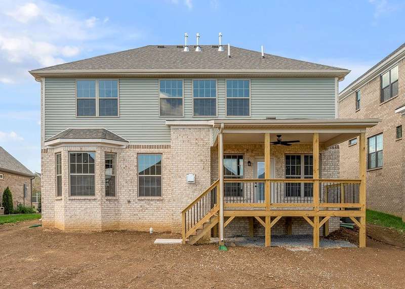 The two-story Dogwood plan offers lots of room to spread out, with a guest suite on the first floor and a primary bedroom suite plus two bedrooms and a loft on the second floor. Construction is complete. The flex room off the entry can serve as an office or formal living or dining room. The kitchen includes a step-in pantry and island with counter dining, opening to the large central Family Room. The hall from the garage offers semi-private access to the guest suite area. The upstairs primary bedroom includes a trey ceiling, and the bath has a double bowl vanity, tub, shower, linen closet, and dual closets. Two bedrooms with generously sized closets, a hall bath, a utility room with folding counter, and large loft complete the upstairs. This plan includes a walk-in unfinished attic storage area off bedroom #2. Job# 172PB