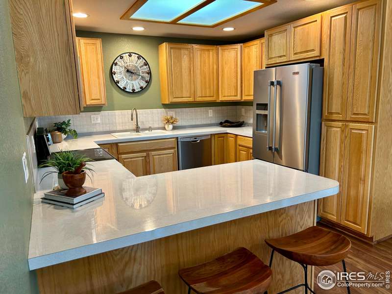 Experience maintenance-free living at its best in this meticulously maintained paired villa in Stone Creek. A covered front porch welcomes you into a bright, open layout where the living room, dining area, and kitchen seamlessly connect. A cozy living room fireplace is perfect for chilly days, while the private back patio offers a spot to relax with extra open space beside the home. The kitchen features stainless steel appliances, ample workspace, and counter seating for casual gatherings; and all cooks can rejoice knowing that there is also a gas line behind the stove. A dedicated office just off the dining area provides a quiet workspace, and the main-floor laundry makes chore day a breeze. The primary suite is an ideal retreat, with a five-piece bath and walk-in closet. Another bedroom and full bath complete the main level. The finished basement is a fantastic hang out spot and offers versatility: a rec room for game night, family room for movie night, gym space for working out, bar area and coffee counter for party night-plus guest room and bathroom for hosting friends and family. With dual-zone heating and cooling, every space remains comfortable year-round. Best of all, yard work and snow removal are taken care of, allowing you to fully enjoy the neighborhood pool, clubhouse, and fitness center. Ideally located near shopping, dining, medical services, and major transportation routes, this lock-and-leave home is the perfect blend of convenience, comfort, and style. Pre-Inspected for Peace of Mind!