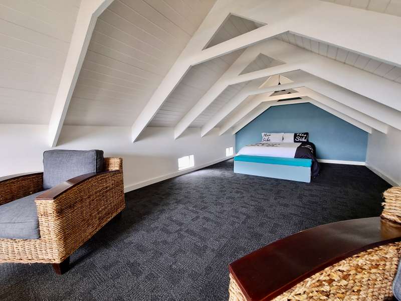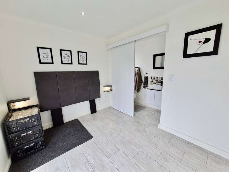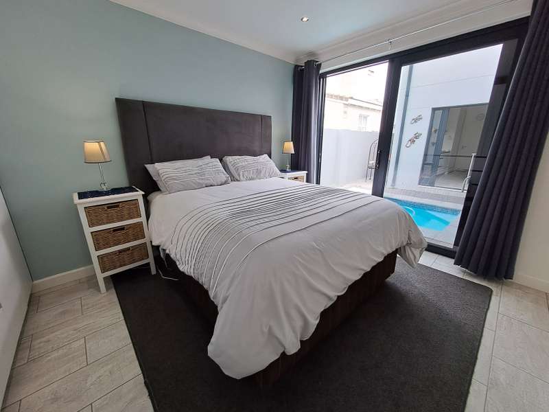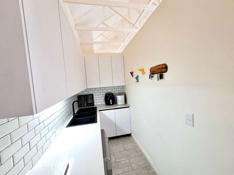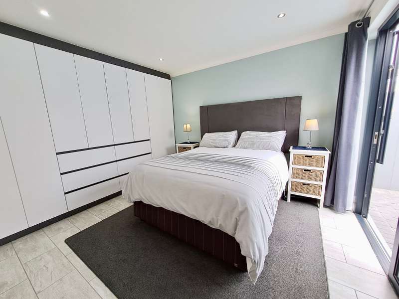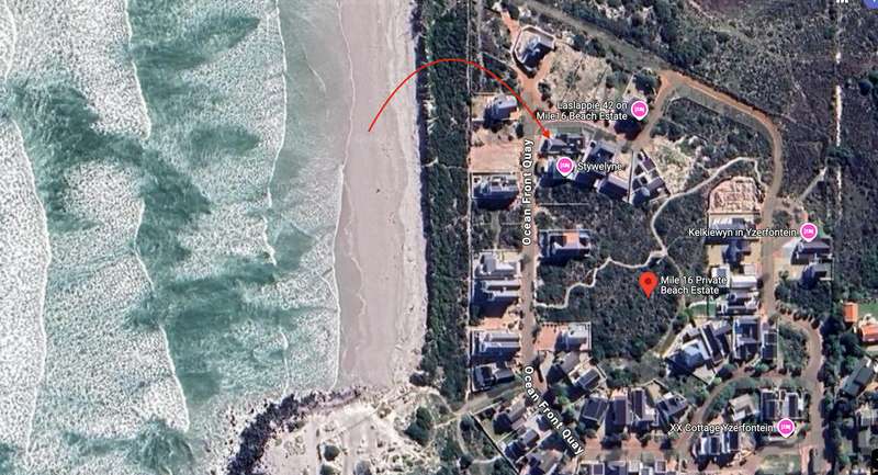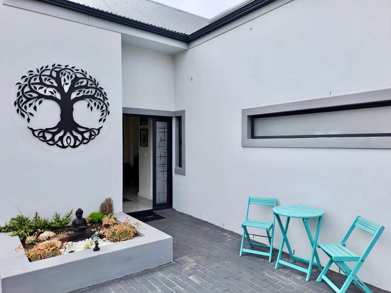 Description: This beautifully designed, modern 3-bedroom house is located within a secure beachfront estate in Yzerfontein, offering an ideal coastal lifestyle just steps from the ocean. Blending contemporary design with functional living, this property provides an exquisite retreat with ample space for family living and entertaining. Interior Features: Open-plan Living Area: The home’s layout integrates the living, dining, and kitchen areas seamlessly. White high-peaked ceilings, exposed wooden beams, and elegant wood-look tiles throughout create a sense of space and sophistication. Kitchen: A sleek, modern kitchen perfect for those who love to cook. It includes white cabinetry, white engineered stone countertops, a black prep sink, extractor fan, and a center island with seating for four. The kitchen also includes a coffee nook, and the adjacent scullery offers extra storage with a water point for a dishwasher and a double Franke sink. Stacker doors open to the backyard, providing convenient outdoor access. Living/Dining Area: Spacious and inviting, the living room features an enclosed combustion fireplace for cozy winter nights. Large stacker doors create a natural flow from the indoors to the outdoor entertainment area. Loft Bedroom: Accessed via a steel and wooden staircase, the loft bedroom offers a versatile space for both relaxation and sleeping, complete with an abundance of natural light. Ground Floor Bedrooms: First Bedroom: Equipped with built-in cupboards and large windows, this bedroom has an en-suite bathroom featuring a glass shower, floating vanity, and toilet. Main Bedroom: Spacious with sliding doors that lead directly to the pool and backyard. The main bathroom is equally luxurious, featuring a glass shower, double floating vanity, and toilet. Outdoor Features: Entertainment Area: A fantastic undercover patio equipped with a built-in braai and weather blinds ensures year-round enjoyment. A sparkling splash pool and artificial grass lawn provide a low-maintenance outdoor experience. The garden also features a fire pit with concrete seating and a separate area for a washing line. Garage and Parking: The property includes a double garage with enough space for two cars and a motorbike. Additionally, there is off-street parking for four more vehicles in front of the house. Additional Highlights: Solar Geyser: Energy-efficient hot water system. Security: Equipped with an alarm system, security beams, and sun-block blinds for added privacy. Windows & Doors: Aluminium windows and doors throughout the house. Beach Access: The estate provides direct access to the beach, enhancing the appeal of this coastal property. Summary: Located in the secure Mile 16 Beachfront Estate, this Yzerfontein property is a gem for those seeking luxury, comfort, and the convenience of beachfront living. Thoughtfully designed with both style and functionality in mind, this home offers a perfect balance of indoor and outdoor spaces for relaxation and entertainment.