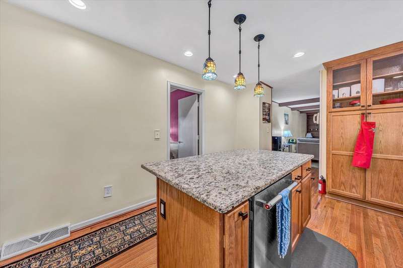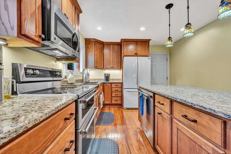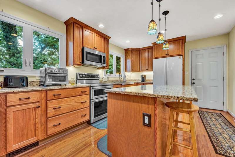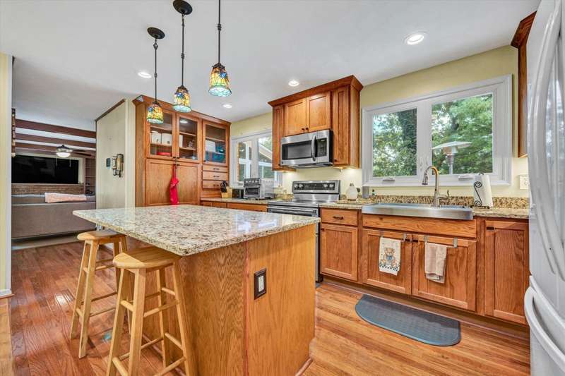 This delightful two-story brick and vinyl home in SW County features 4 bedrooms and 2.5 baths, and welcomes you with a covered front porch. The updated kitchen shines with granite countertops, a custom stainless-steel sink with touchless faucet, all appliances, soft-close cabinets and a spacious formal dining room perfect for gatherings. Enjoy the cozy living room or the den, complete with built-in shelving and a gas log masonry fireplace. Hardwood flooring enhances the first-floor living spaces. A tiled all-season sunroom opens to a generous deck overlooking a private fenced backyard. Upper level has 4 bedrooms including the master bedroom with an en-suite bathroom. The hall bathroom has a jetted tub and both bathrooms upstairs have Bluetooth lighted exhaust fans.
