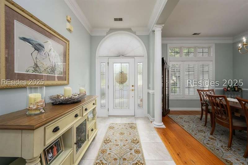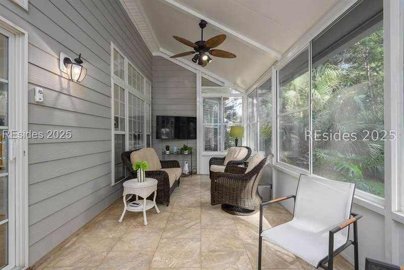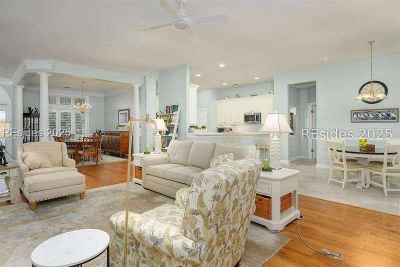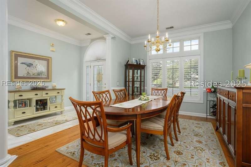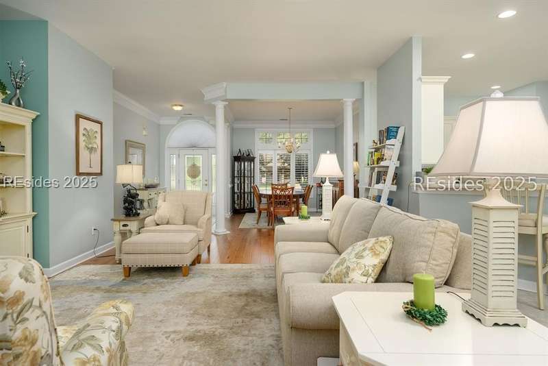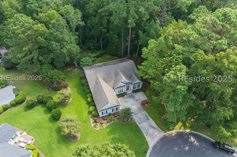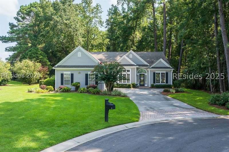 This beautiful .44 acre property is located on one of the most private and peaceful court locations in The Crescent! The Crescent backs to Colleton River marshes. This is a Chartwell model with a sunroom off the great room. 4 bedrooms/3 baths. New HVAC 2024-15 SEER. 30 yr Owens Corning Roof 2017 w/transferable warranty. Gracious and inviting foyer. Hickory hardwood floors in GR & DR, tile floors in Kit. Plantation Shutters: primary bedroom & bath, DR, guest room and reading room. White 42" kitchen cabs refaced plus pull out drawers, under cabinet lighting, tile backsplash, center island stays. Kitchen SS appliances: GE Induction Cooktop stove and microwave '23, GE refrigerator '22. White Bosch DW '20. Sunroom with large tile flooring, vinyl siders. Primary bedroom with tray ceiling, bath with separate shower, soaking tub, double sinks, linen closet, & big clothes closet. Large laundry room w/cabinets and sink located between kitchen and garage. Very private view in back. Arnold Palmer Signature Golf course. Free one month membership as new owner. 10 minutes to all Bluffton fun and shopping. 3 miles to the island. The Crescent front gate is manned 24/7 plus convenient back gate to Belfair Towne Center shopping center. Other amenities include pickleball and tennis courts, Olympic saltwater lap pool and kiddie pool, covered picnic pavilion, restaurant in clubhouse.