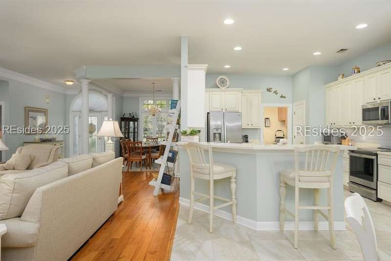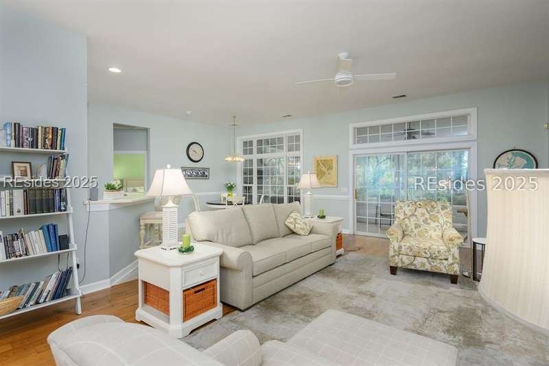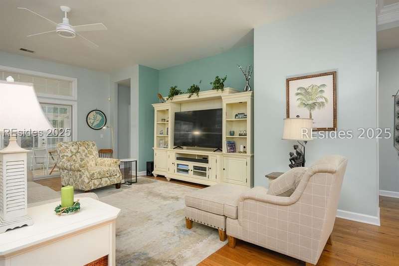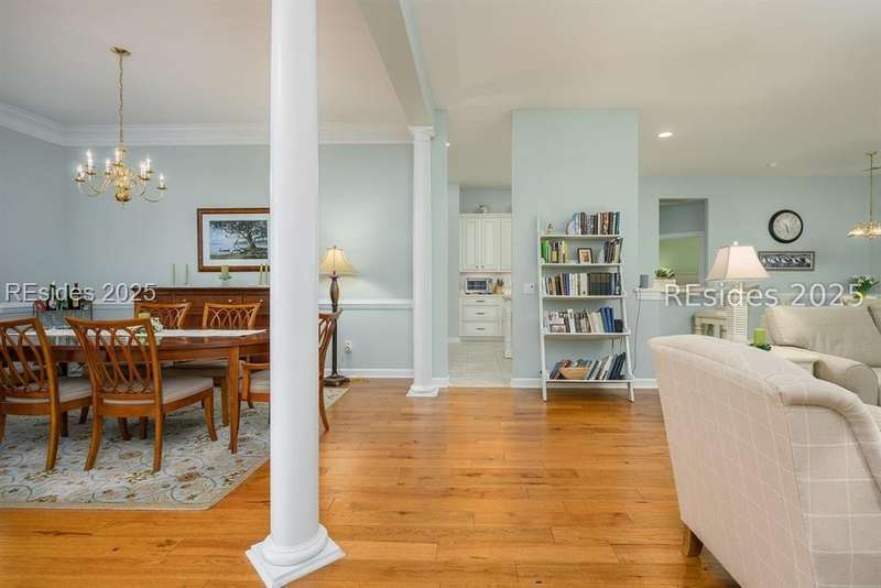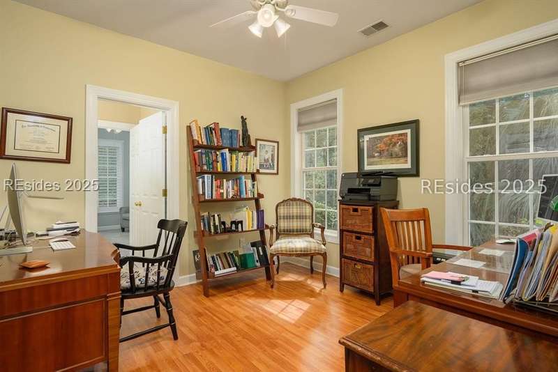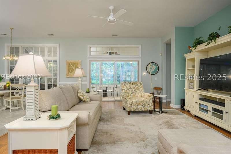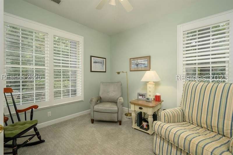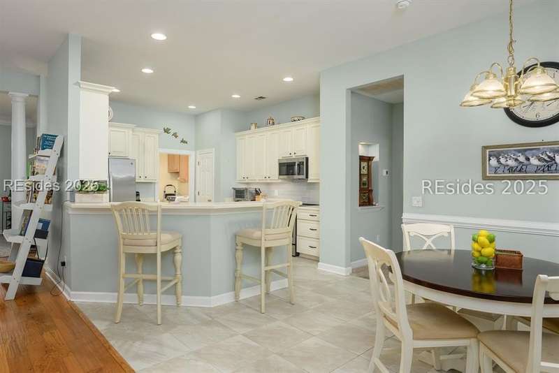 This beautiful .44 acre property is located on one of the most private and peaceful court locations in The Crescent! The Crescent backs to Colleton River marshes. This is a Chartwell model with a sunroom off the great room. 4 bedrooms/3 baths. New HVAC 2024-15 SEER. 30 yr Owens Corning Roof 2017 w/transferable warranty. Gracious and inviting foyer. Hickory hardwood floors in GR & DR, tile floors in Kit. Plantation Shutters: primary bedroom & bath, DR, guest room and reading room. White 42" kitchen cabs refaced plus pull out drawers, under cabinet lighting, tile backsplash, center island stays. Kitchen SS appliances: GE Induction Cooktop stove and microwave '23, GE refrigerator '22. White Bosch DW '20. Sunroom with large tile flooring, vinyl siders. Primary bedroom with tray ceiling, bath with separate shower, soaking tub, double sinks, linen closet, & big clothes closet. Large laundry room w/cabinets and sink located between kitchen and garage. Very private view in back. Arnold Palmer Signature Golf course. Free one month membership as new owner. 10 minutes to all Bluffton fun and shopping. 3 miles to the island. The Crescent front gate is manned 24/7 plus convenient back gate to Belfair Towne Center shopping center. Other amenities include pickleball and tennis courts, Olympic saltwater lap pool and kiddie pool, covered picnic pavilion, restaurant in clubhouse.