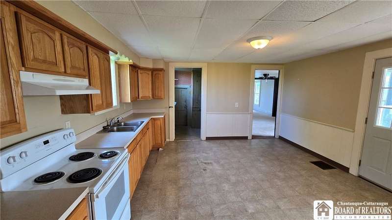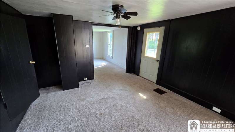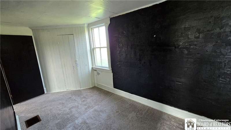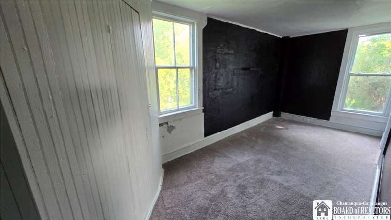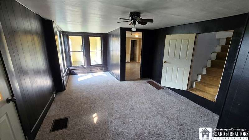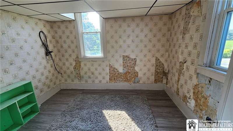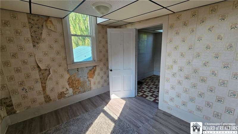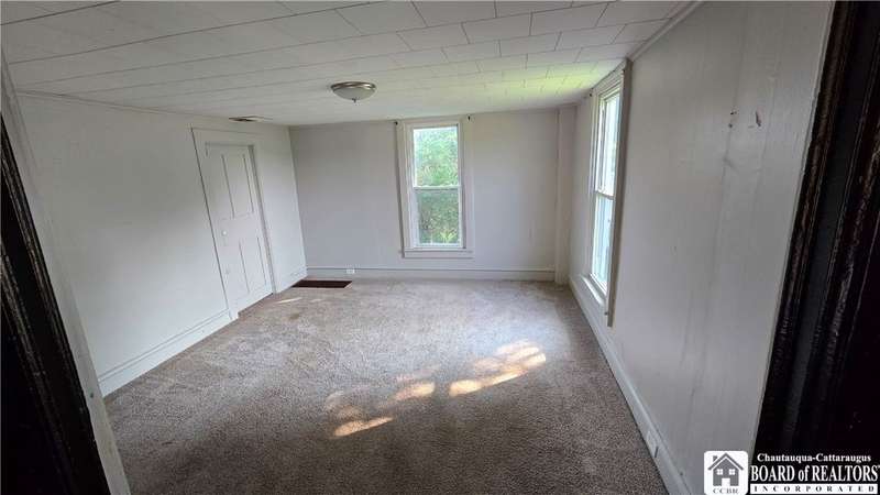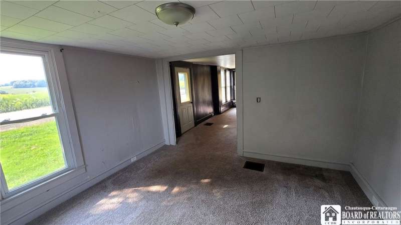 Located on 2 acres, this home features three bedrooms and one bathroom with a first-floor laundry room, metal roof, and a classic farmhouse character throughout. The spacious lot provides ample outdoor space for recreation, gardening, or future improvements. Conveniently situated in South Dayton, this property combines rural setting with functional living space. Needs some cosmetic updates. Taxes and assessment reflect the entire parcel which will be subdivided at closing.